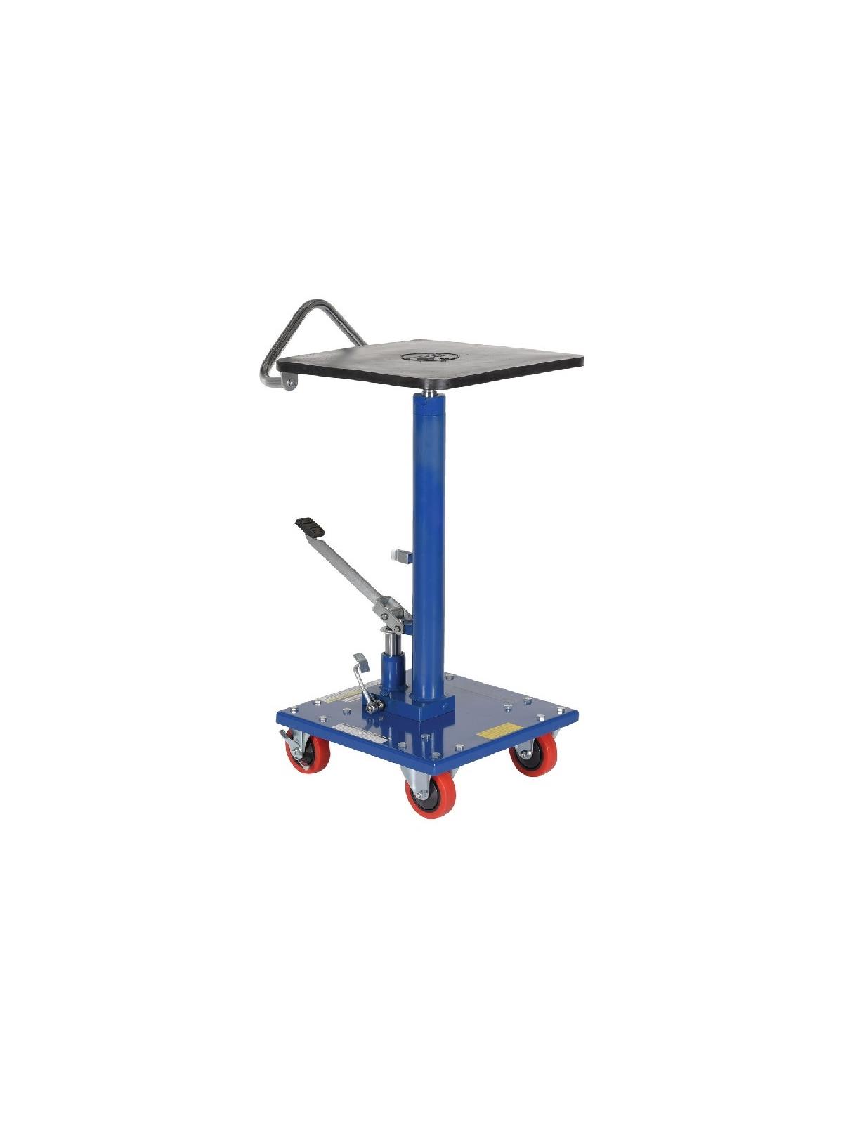 Hydraulic center post lifts tabletop with rigidity. Models with corner posts are telescoping to help stabilize and fully support the load during operation. Rolls smoothly on durable heavy duty casters. FOB Shipping Point.