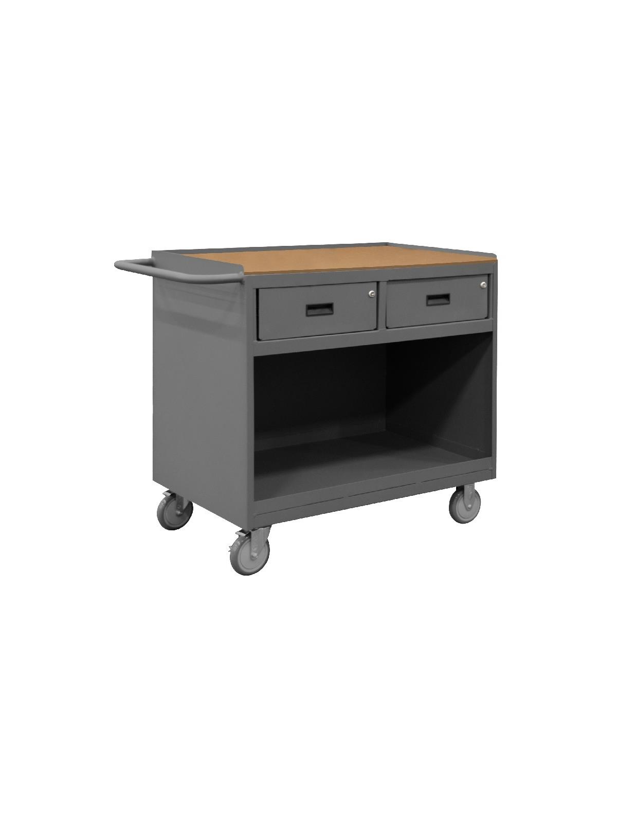Bench cabinets are constructed of 14 gauge steel. Convenient sturdy work surface with back and end stops on the work surface prevents parts from falling off during transport (MT units not included). Tubular handle for easy maneuverability. Cabinet doors have a 3 point locking system with 4 keys. Rolls smoothly on 5" polyurethane bolt-on casters, (2) swivel with side brakes and (2) rigid. 36"W model has 1,200 lbs. capacity. 48"W model has 2,000 lbs. capacity and includes a floor lock to keep the unit in place while you work. FOB Shipping Point.