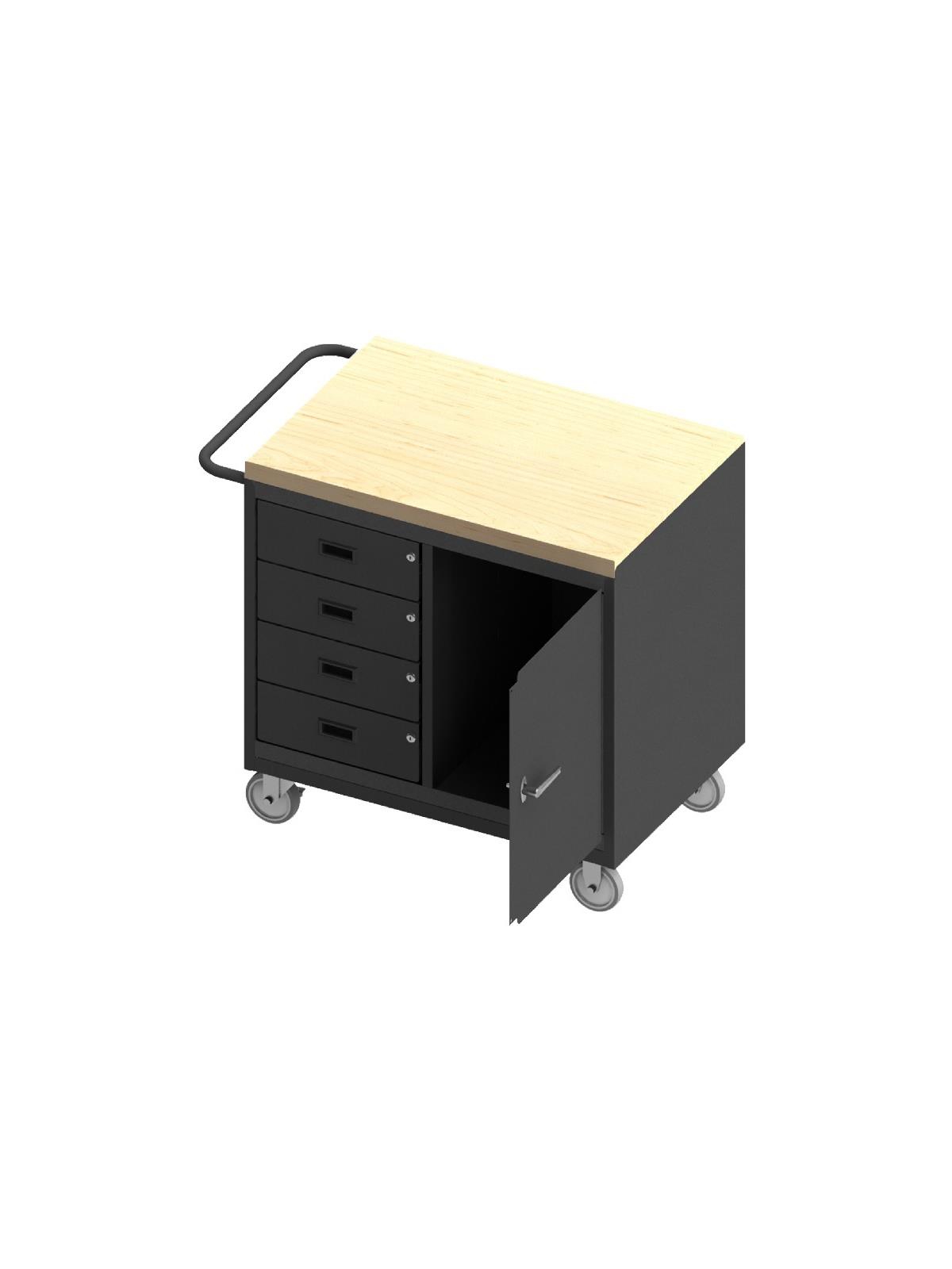 Bench cabinets are constructed of 14 gauge steel. Convenient sturdy work surface with back and end stops on the work surface prevents parts from falling off during transport (MT units not included). Tubular handle for easy maneuverability. Cabinet doors have a 3 point locking system with 4 keys. Rolls smoothly on 5" polyurethane bolt-on casters, (2) swivel with side brakes and (2) rigid. 36"W model has 1,200 lbs. capacity. 48"W model has 2,000 lbs. capacity and includes a floor lock to keep the unit in place while you work. FOB Shipping Point.