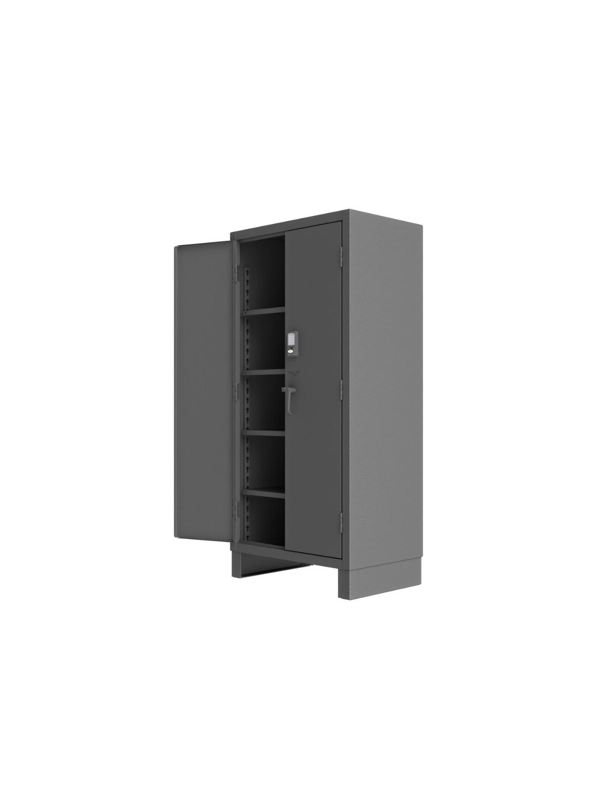 The access controlled lock allows for 250 users. Access is via personal identification numbers and or HID proximity cards. The lock operates with 6 AA batteries. The lock records 1500 access attempts (i.e. who entered, date and time). The Data from the lock can be downloaded to a computer. FOB Shipping Point.