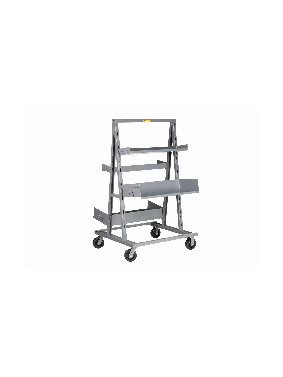 Slotted uprights accept your choice of optional hook-on trays, shelves, or pegboard panels. Rolls smoothly on 6 x 2" phenolic casters, 2 swivel and 2 rigid. Available single or double sided. Optional accessories include Trays, Shelves, and Pegboard Panels. Order truck and accessories separately. FOB Shipping Point.