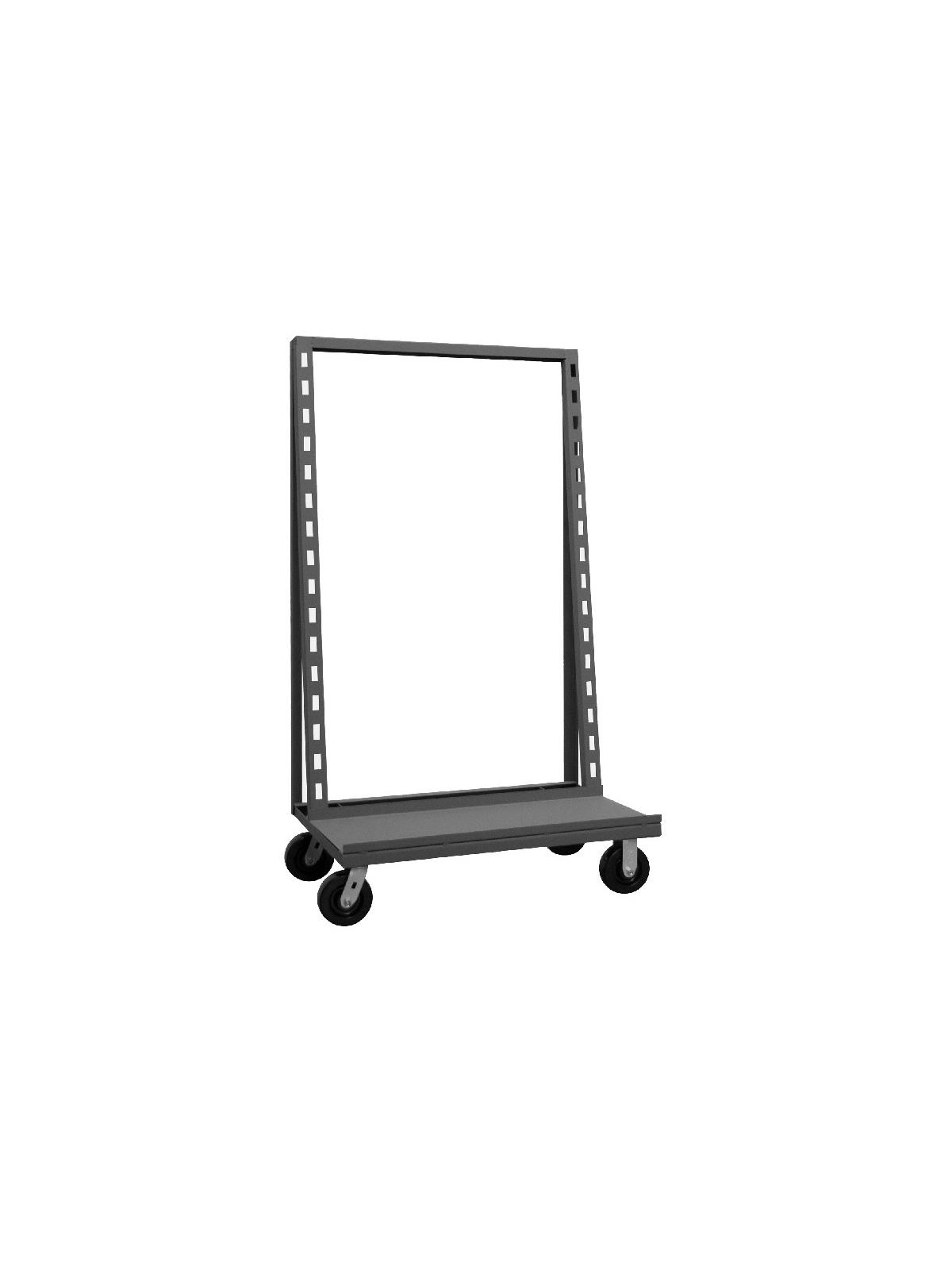 Keep parts, tools, supplies and packages right at the assembly line or work center. Heavy-duty all-steel construction. Base is 1-1/2" x 1/8" angle iron with 11 ga. steel formed upright channels punched on 3-1/2" centers. Easy rolling on bolt on 6" x 2" phenolic casters, 2 rigid, 2 swivel. Finished in durable Gray powder coat finish. Shipped fully assembled and ready for use. FOB Shipping Point.