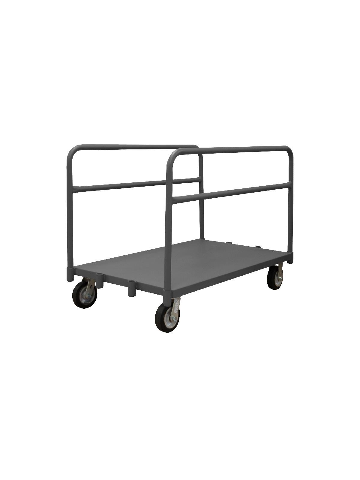 Easy to access and pick up on-board product. Create multiple opening sizes by adjusting dividers. All casters: 2 rigid, 2 swivel. Allows for the storage and transportation of various sizes of panels and product. Gray, textured, powder coat finish. FOB Shipping Point.