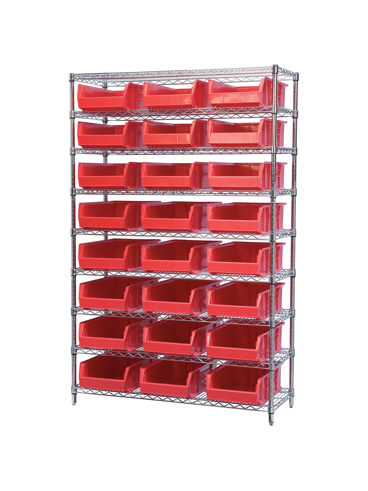A wide variety of shelf configurations are possible with three sizes of shelving available. Durable AkroBins® feature a curved bottom hopper front, to enable easy access of small parts. Bins available in Blue, Red, Yellow, Stone, Green, or Semi-Clear. FOB Shipping Point.
