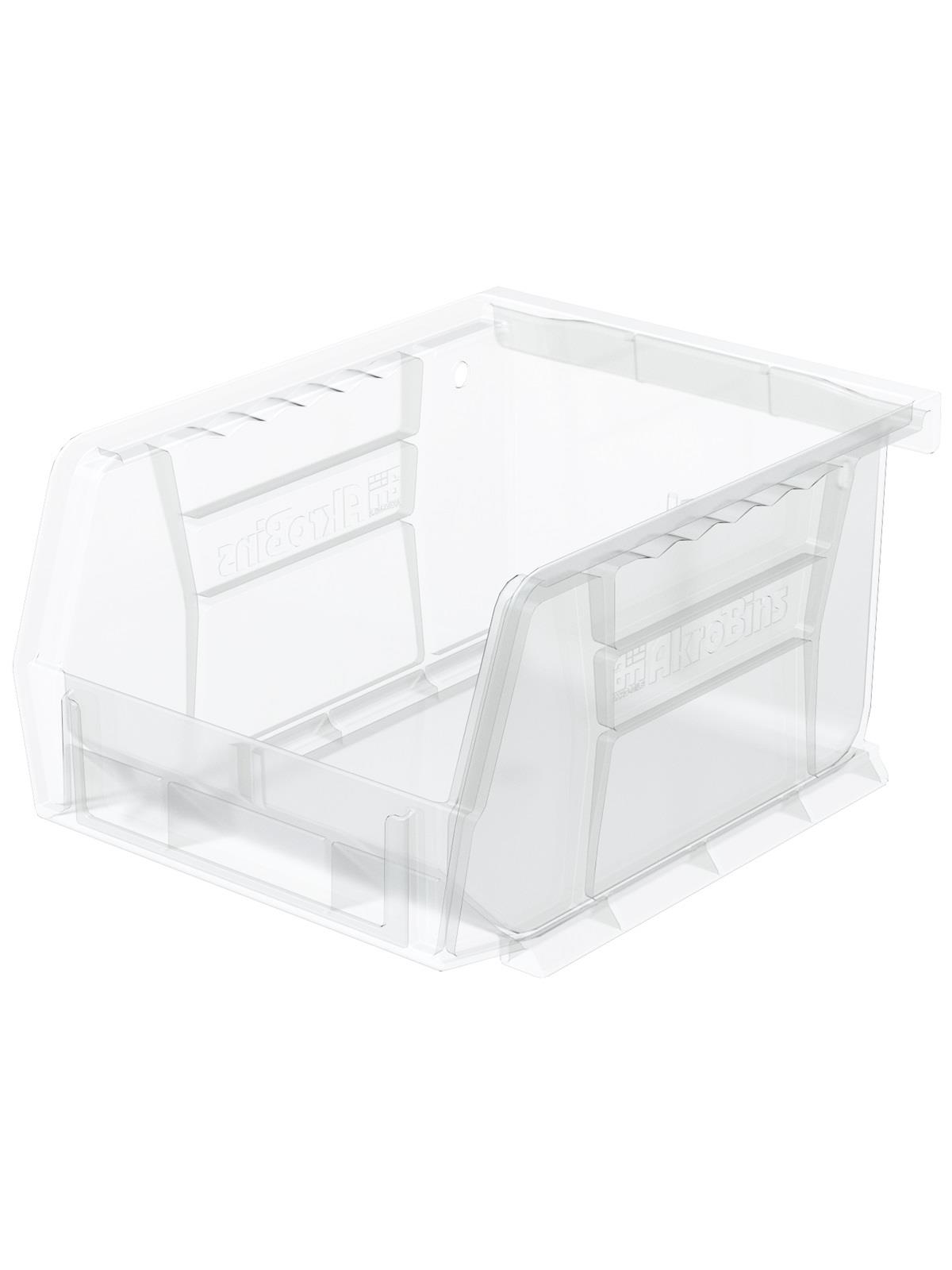 AkroBins are heavy-duty and securely stack on top of each other, sit on shelving, and hang from Akro-Mils racks, panels, rails and carts. Unaffected by weak acids and alkalis the sturdy one piece construction is water, rust and corrosion-proof. Finger grip allows for easy handling. Large label slot for easy identification of contents. Autoclavable up to 250° F. Guaranteed not to crack or break under normal load conditions as stated in the 1-year limited warranty. Optional dividers and labels available, see Related Items tab. AkroBins available in Red, Yellow, Blue, Green, Black, Stone, and Semi-Clear. FOB Shipping Point.
