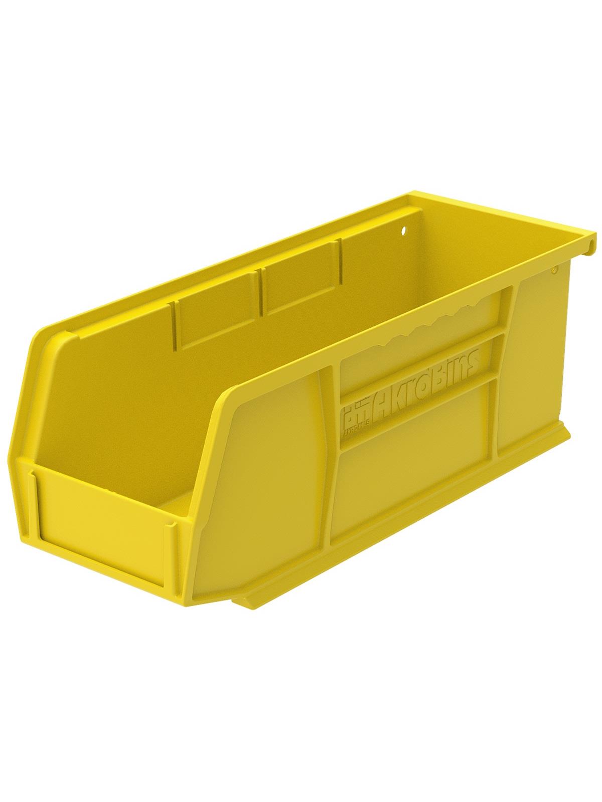 AkroBins are heavy-duty and securely stack on top of each other, sit on shelving, and hang from Akro-Mils racks, panels, rails and carts. Unaffected by weak acids and alkalis the sturdy one piece construction is water, rust and corrosion-proof. Finger grip allows for easy handling. Large label slot for easy identification of contents. Autoclavable up to 250° F. Guaranteed not to crack or break under normal load conditions as stated in the 1-year limited warranty. Optional dividers and labels available, see Related Items tab. AkroBins available in Red, Yellow, Blue, Green, Black, Stone, and Semi-Clear. FOB Shipping Point.