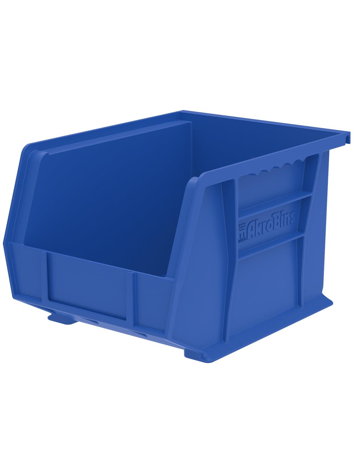 AkroBins are heavy-duty and securely stack on top of each other, sit on shelving, and hang from Akro-Mils racks, panels, rails and carts. Unaffected by weak acids and alkalis the sturdy one piece construction is water, rust and corrosion-proof. Finger grip allows for easy handling. Large label slot for easy identification of contents. Autoclavable up to 250° F. Guaranteed not to crack or break under normal load conditions as stated in the 1-year limited warranty. Optional dividers and labels available, see Related Items tab. AkroBins available in Red, Yellow, Blue, Green, Black, Stone, and Semi-Clear. FOB Shipping Point.