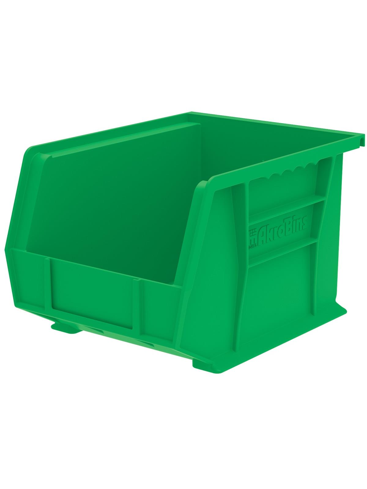 AkroBins are heavy-duty and securely stack on top of each other, sit on shelving, and hang from Akro-Mils racks, panels, rails and carts. Unaffected by weak acids and alkalis the sturdy one piece construction is water, rust and corrosion-proof. Finger grip allows for easy handling. Large label slot for easy identification of contents. Autoclavable up to 250° F. Guaranteed not to crack or break under normal load conditions as stated in the 1-year limited warranty. Optional dividers and labels available, see Related Items tab. AkroBins available in Red, Yellow, Blue, Green, Black, Stone, and Semi-Clear. FOB Shipping Point.