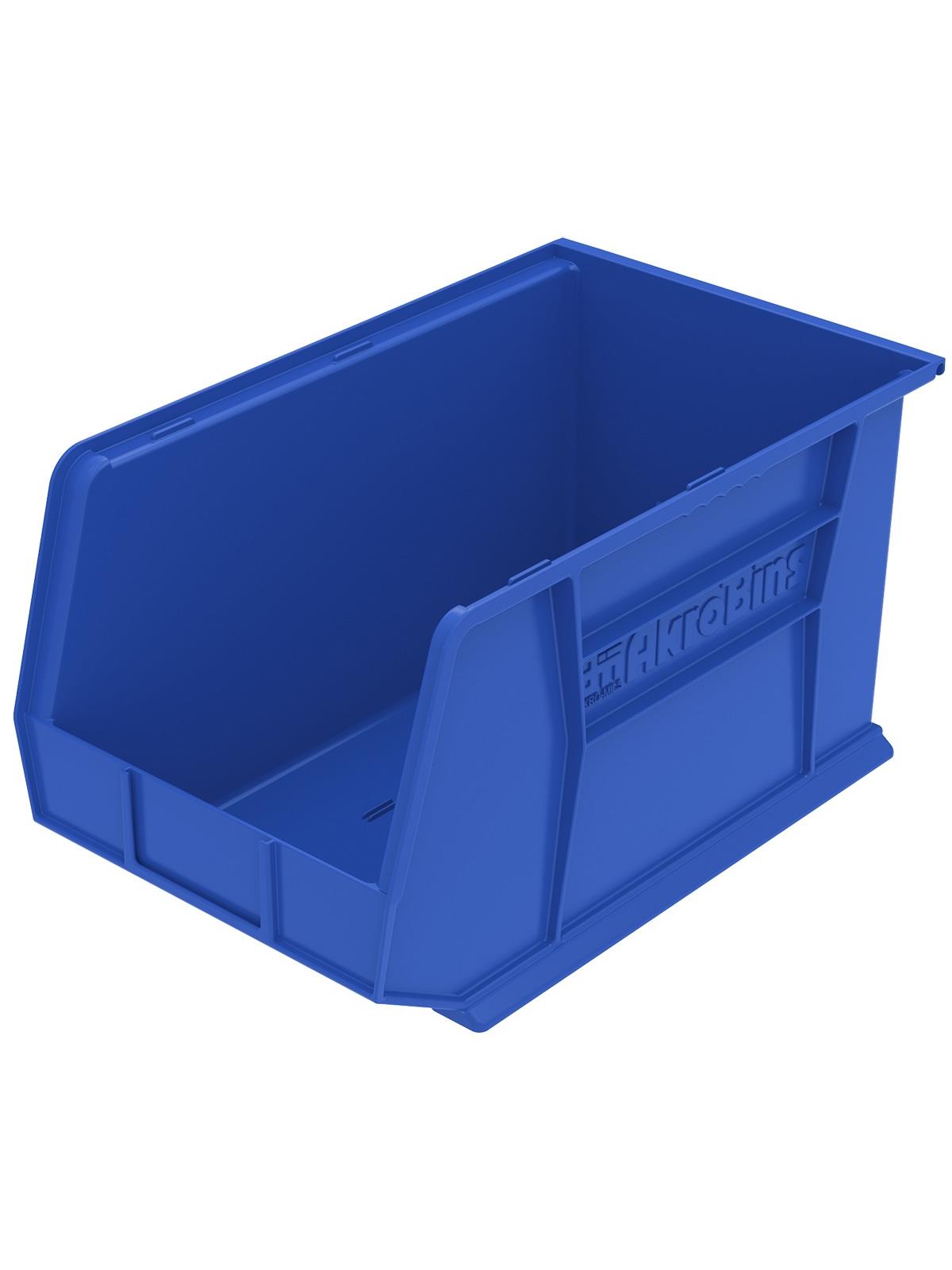 AkroBins are heavy-duty and securely stack on top of each other, sit on shelving, and hang from Akro-Mils racks, panels, rails and carts. Unaffected by weak acids and alkalis the sturdy one piece construction is water, rust and corrosion-proof. Finger grip allows for easy handling. Large label slot for easy identification of contents. Autoclavable up to 250° F. Guaranteed not to crack or break under normal load conditions as stated in the 1-year limited warranty. Optional dividers and labels available, see Related Items tab. AkroBins available in Red, Yellow, Blue, Green, Black, Stone, and Semi-Clear. FOB Shipping Point.