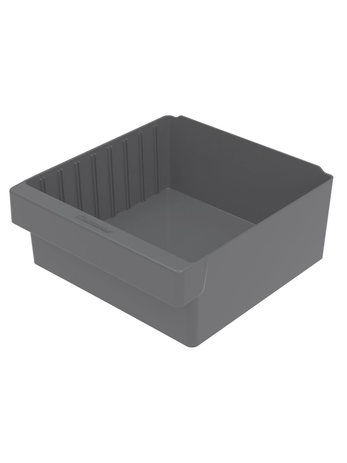 Offered in 12" or 18" depths to work with compatible shelving. Easy to label and color code inventory for quick identification of parts and supplies. Drawers can be stacked to optimize space. Wide front handle for easy gripping when AkroDrawers are loaded or contain heavy contents. Can be used with available shelving, racks, mobile carts or can be used by themselves. Sturdy back stop tab ensures AkroDrawers can hang securely from shelves. Dividers are available to keep contents neatly separated in drawers. Available in Blue, Gray, Yellow, Red and Clear - Minimum order required. FOB Shipping Point.