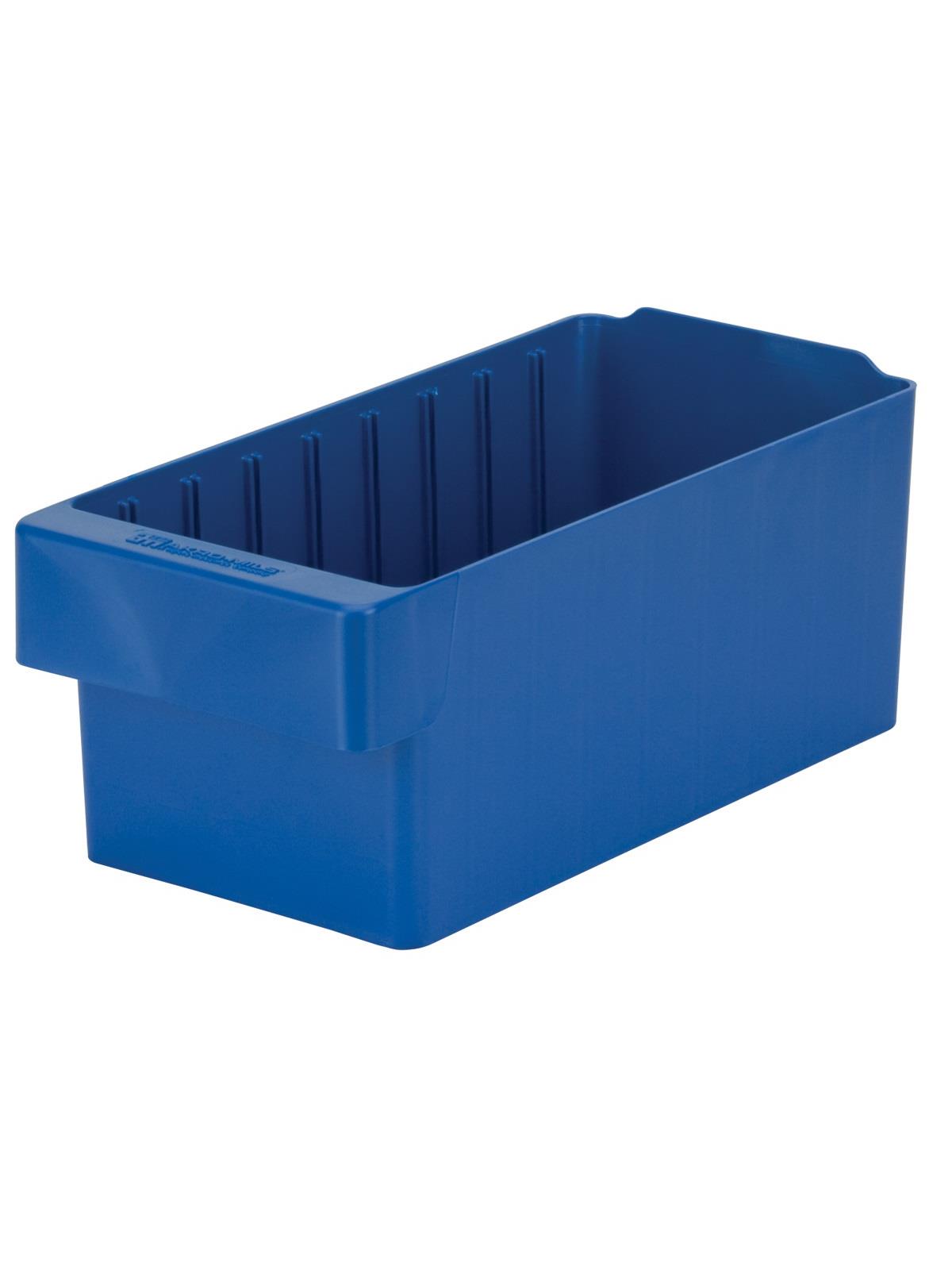 Offered in 12" or 18" depths to work with compatible shelving. Easy to label and color code inventory for quick identification of parts and supplies. Drawers can be stacked to optimize space. Wide front handle for easy gripping when AkroDrawers are loaded or contain heavy contents. Can be used with available shelving, racks, mobile carts or can be used by themselves. Sturdy back stop tab ensures AkroDrawers can hang securely from shelves. Dividers are available to keep contents neatly separated in drawers. Available in Blue, Gray, Yellow, Red and Clear - Minimum order required. FOB Shipping Point.