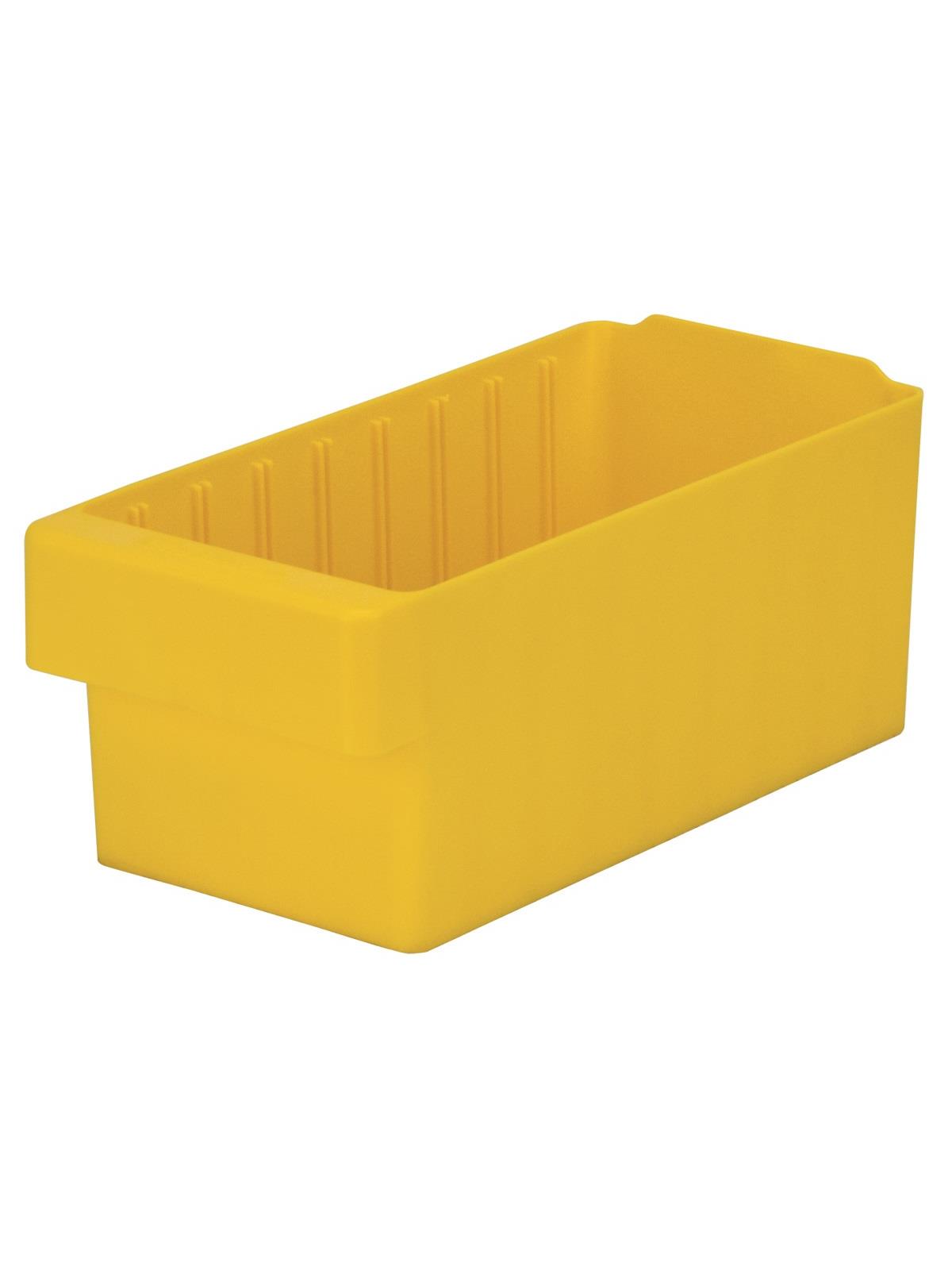 Offered in 12" or 18" depths to work with compatible shelving. Easy to label and color code inventory for quick identification of parts and supplies. Drawers can be stacked to optimize space. Wide front handle for easy gripping when AkroDrawers are loaded or contain heavy contents. Can be used with available shelving, racks, mobile carts or can be used by themselves. Sturdy back stop tab ensures AkroDrawers can hang securely from shelves. Dividers are available to keep contents neatly separated in drawers. Available in Blue, Gray, Yellow, Red and Clear - Minimum order required. FOB Shipping Point.