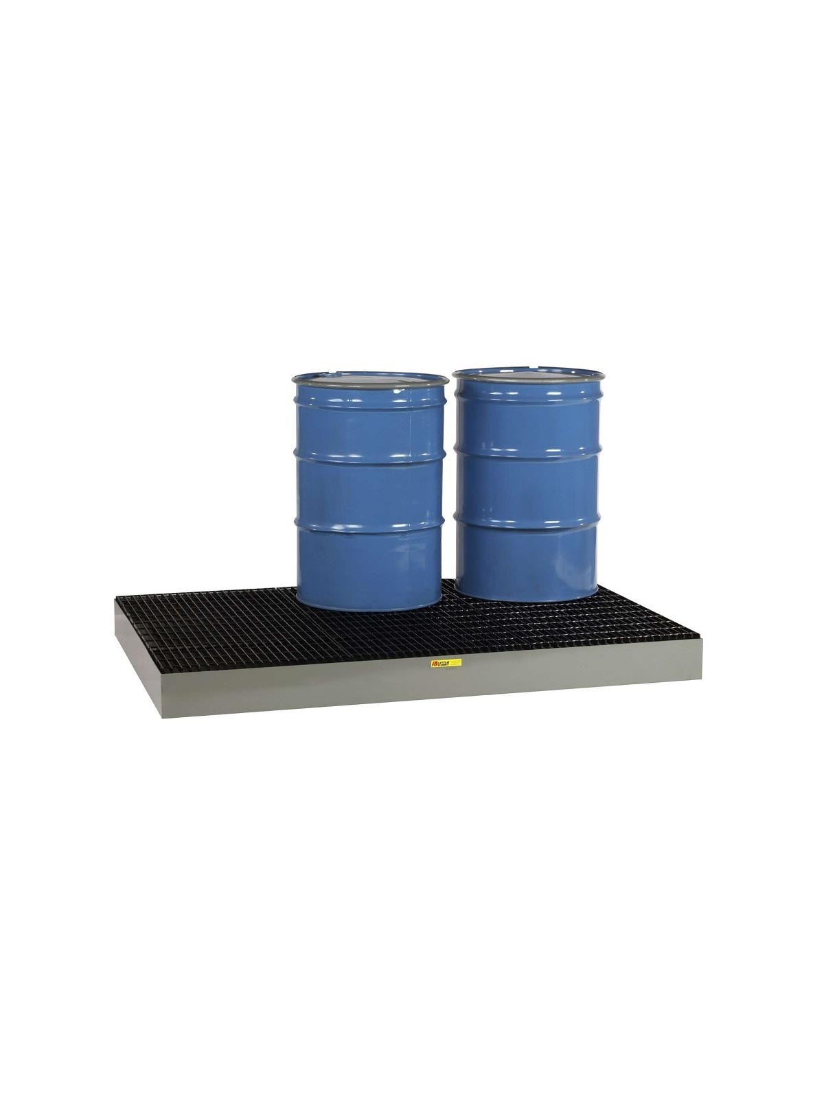 Heavy gauge steel construction for storage of materials that are not compatible with plastic. Sumps and ramps have durable powder coated finish. Welded bar grating can be removed for cleaning. Fork Liftable Ramp optional. FOB Shipping Point.