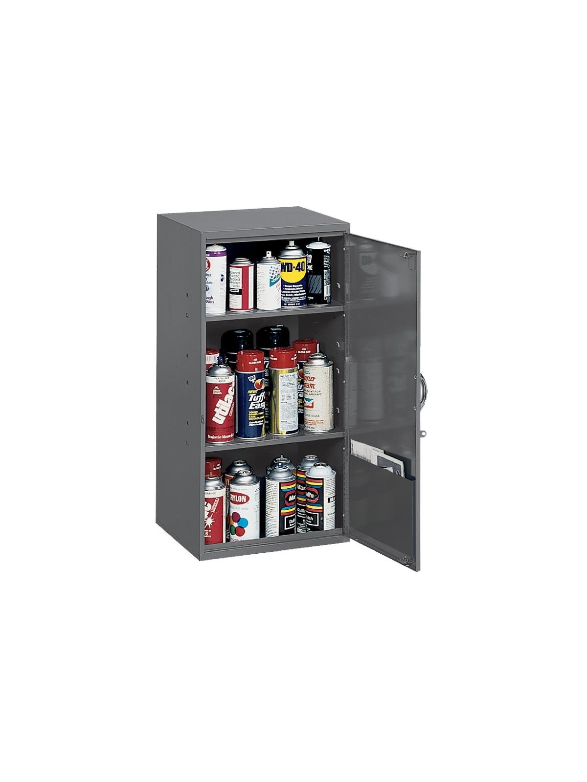 Lockable Utility Cabinets...Features 2 adjustable shelves, hinged door with a plated door handle to make opening easy. Keyhole slots for easy wall mounting.