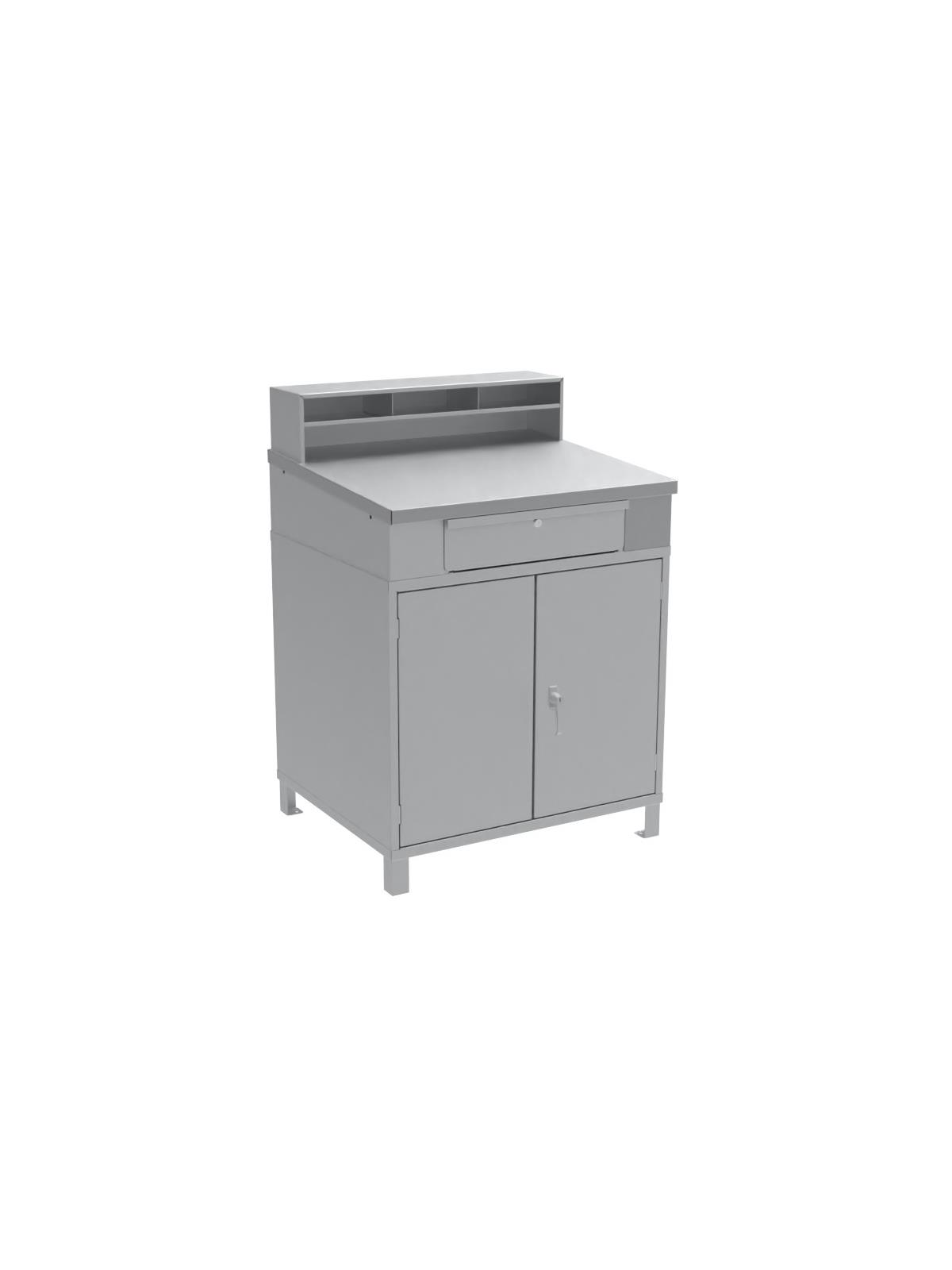 - Closed style: 50-1/4"H fixed height and enclosed locking cabinet.