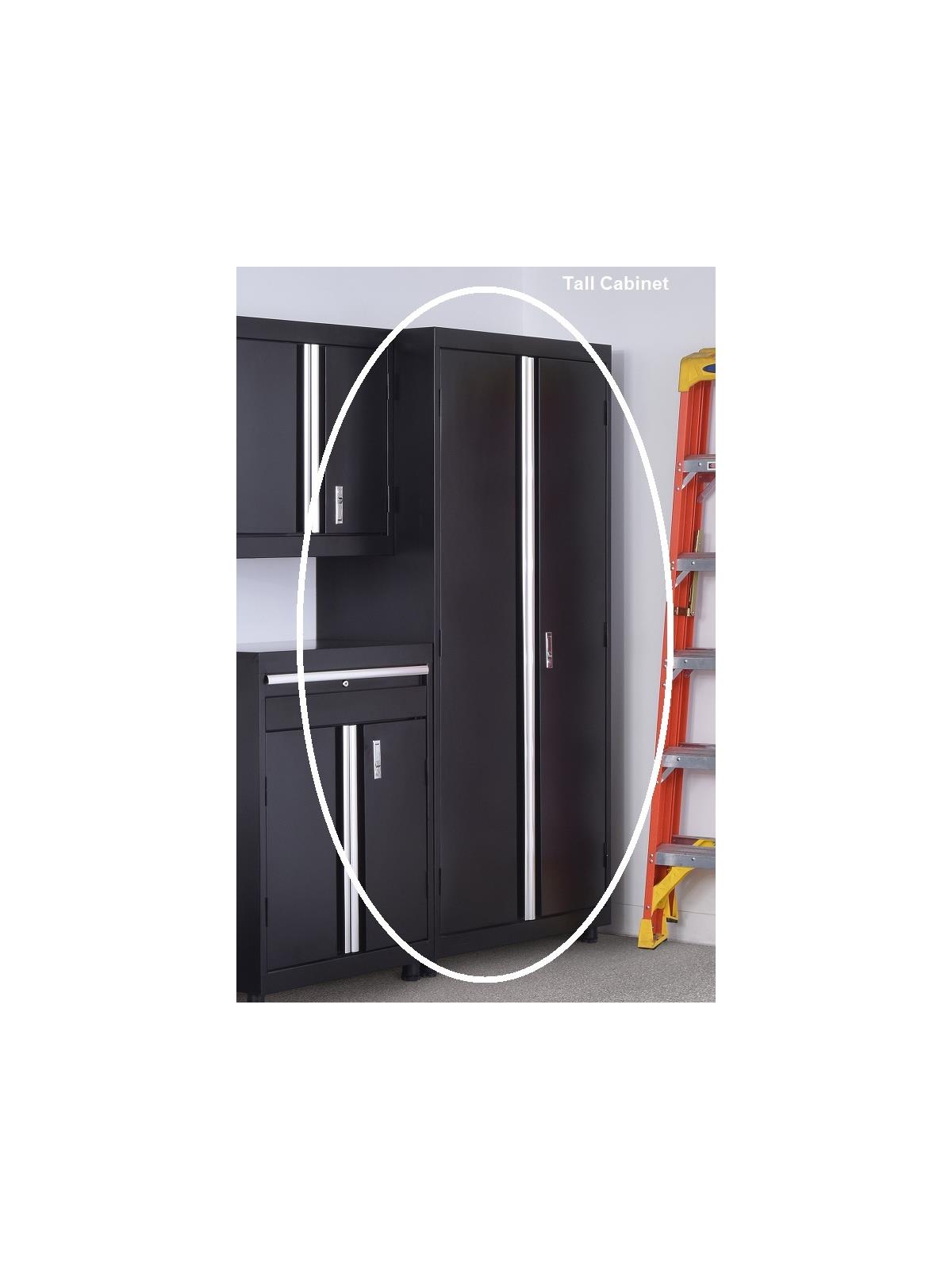 Durable all welded steel construction with durable black finish for lasting protection and beauty. Doors have full-length door pulls and a push button lock to keep cabinet secure. Heavy duty rounded legs with leveling guides to keep cabinets evenly leveled. Shelves adjust on 2" centers to accommodate various size items. 200 lb. capacity shelves; wall cabinet has 150 lb. capacity shelves. Cut-out access holes in back of cabinets allow cords through for charging. Drawer fully extends on ball-bearing slides. FOB Shipping Point.