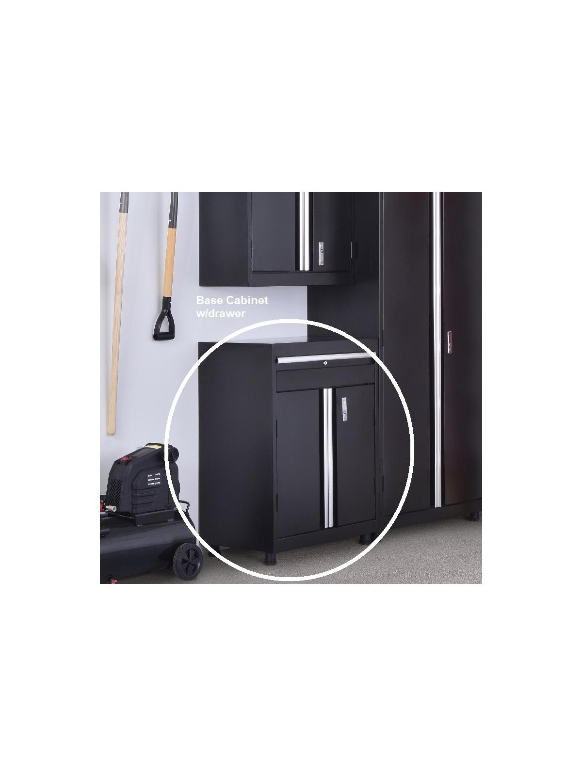 Durable all welded steel construction with durable black finish for lasting protection and beauty. Doors have full-length door pulls and a push button lock to keep cabinet secure. Heavy duty rounded legs with leveling guides to keep cabinets evenly leveled. Shelves adjust on 2" centers to accommodate various size items. 200 lb. capacity shelves; wall cabinet has 150 lb. capacity shelves. Cut-out access holes in back of cabinets allow cords through for charging. Drawer fully extends on ball-bearing slides. FOB Shipping Point.