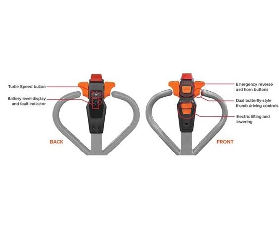 This pallet jack is an economical, quiet, very low maintenance and perfect for light and medium duty jobs. Compact design, low service weight and small turning radius makes it ideal for loading docks and use within narrow aisles. Tiller head handle is designed for comfortable and ergonomic operation. A unique fork design allows for easy entrance and exit from pallets. 24V DC permanent magnet motor. Enclosed design and one-piece steel battery cover provides protection to the main components. FOB Shipping Point.