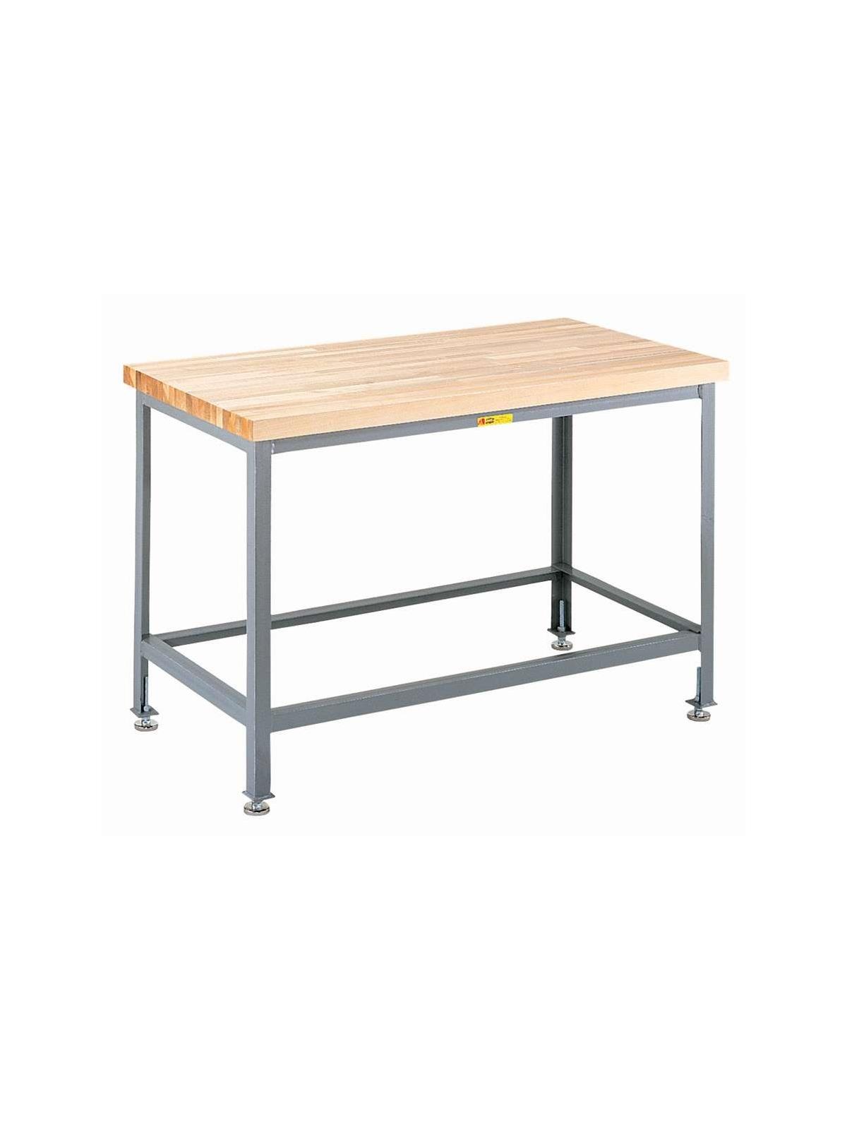 1-3/4" thick Butcher Block Top on welded steel frame for long lasting durability. Fully assembled and ready to use. FOB Shipping Point.