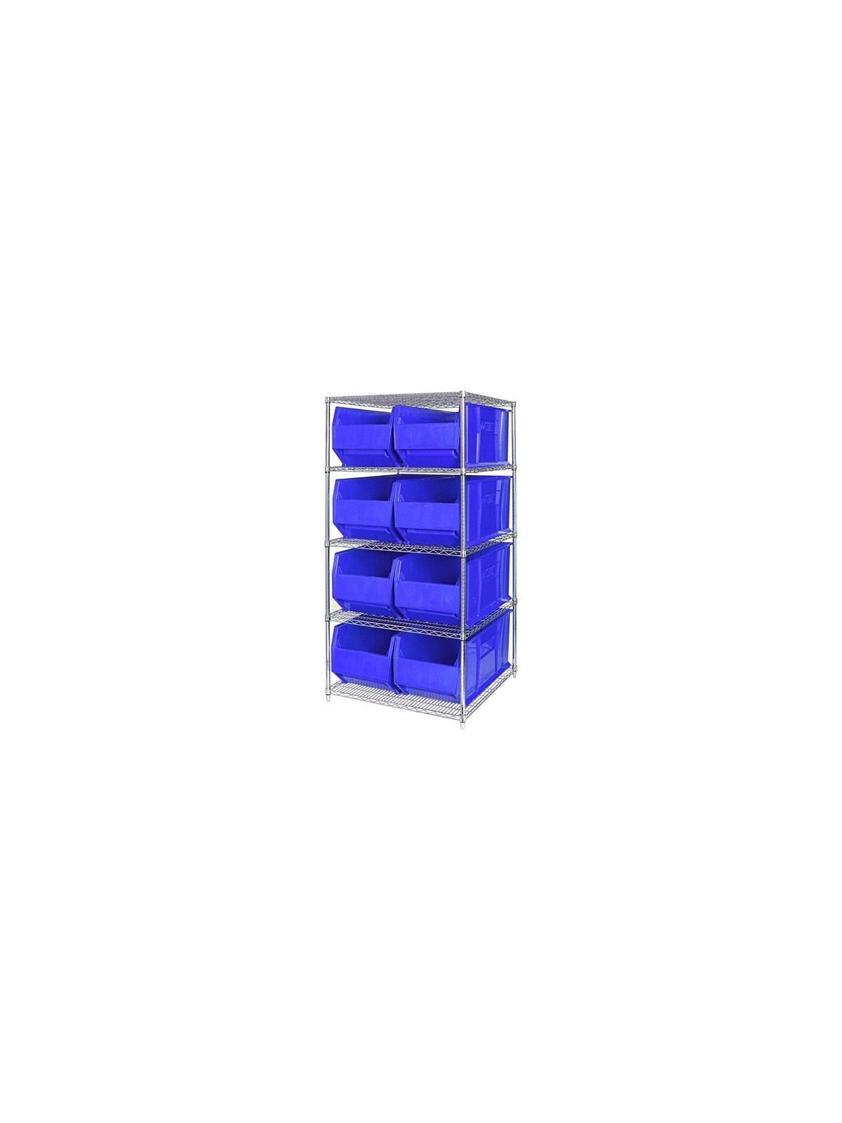 Combine stylish chrome shelving and parts organizing bins. Sturdy shelving unit supports loads up to 800 lbs. Choice of bins. Easy to assemble. Hulk Containers are available in Blue, Red and Yellow. FOB Shipping Point.