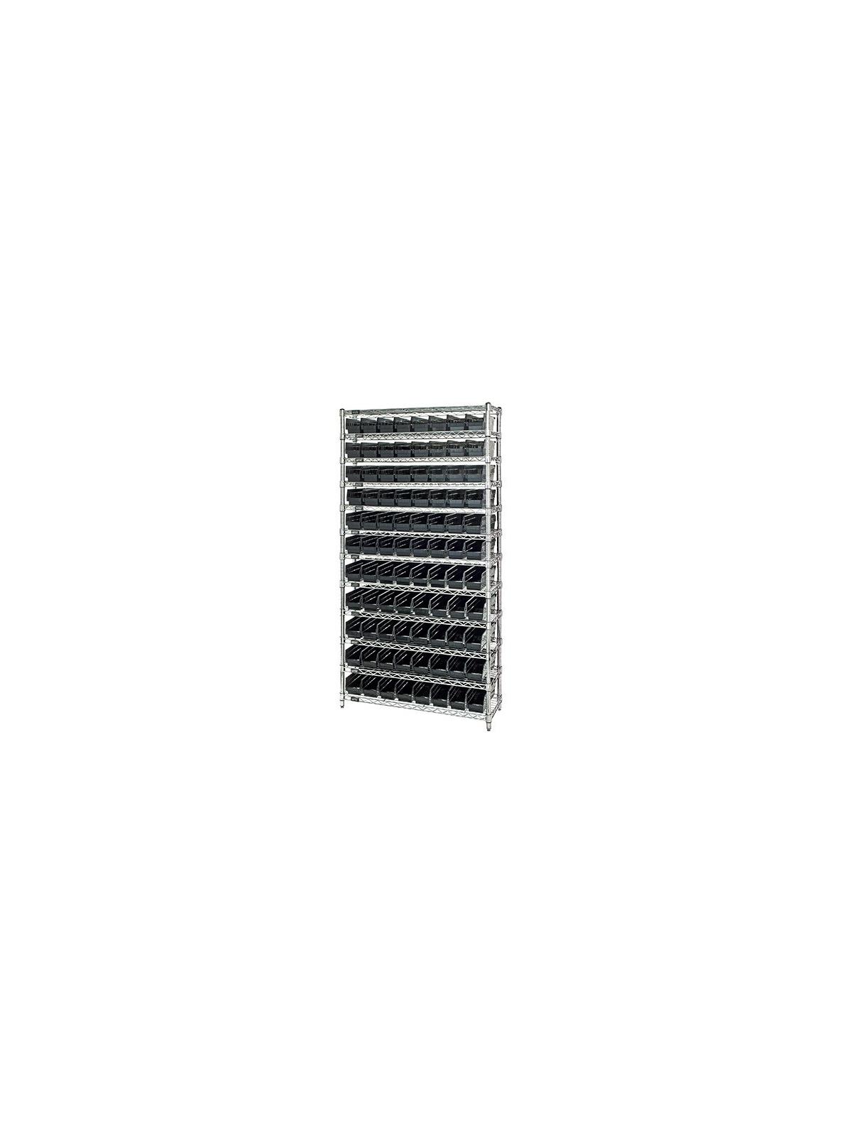 Combine stylish chrome shelving and parts organizing bins. Sturdy shelving unit supports loads up to 800 lbs. Choice of bins. Easy to assemble. Shelf Bins are available in Blue, Red, Yellow, Green, Ivory or Black.  FOB Shipping Point.