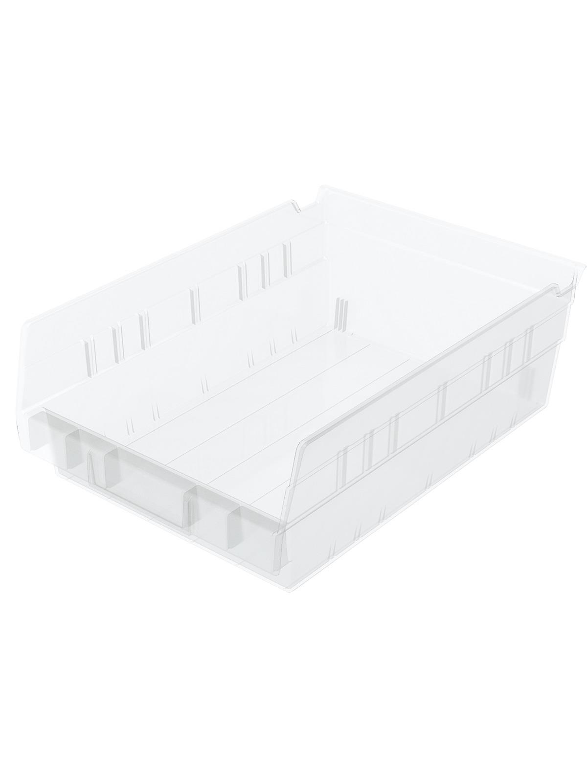 4" Shelf Bins are the industry standard for quality, durability and value. Molded from durable polypropylene for easy identification of parts and supplies. Built-in rear hanglock allows bin to tilt out for complete access. Optional dividers available. FOB Shipping Point.