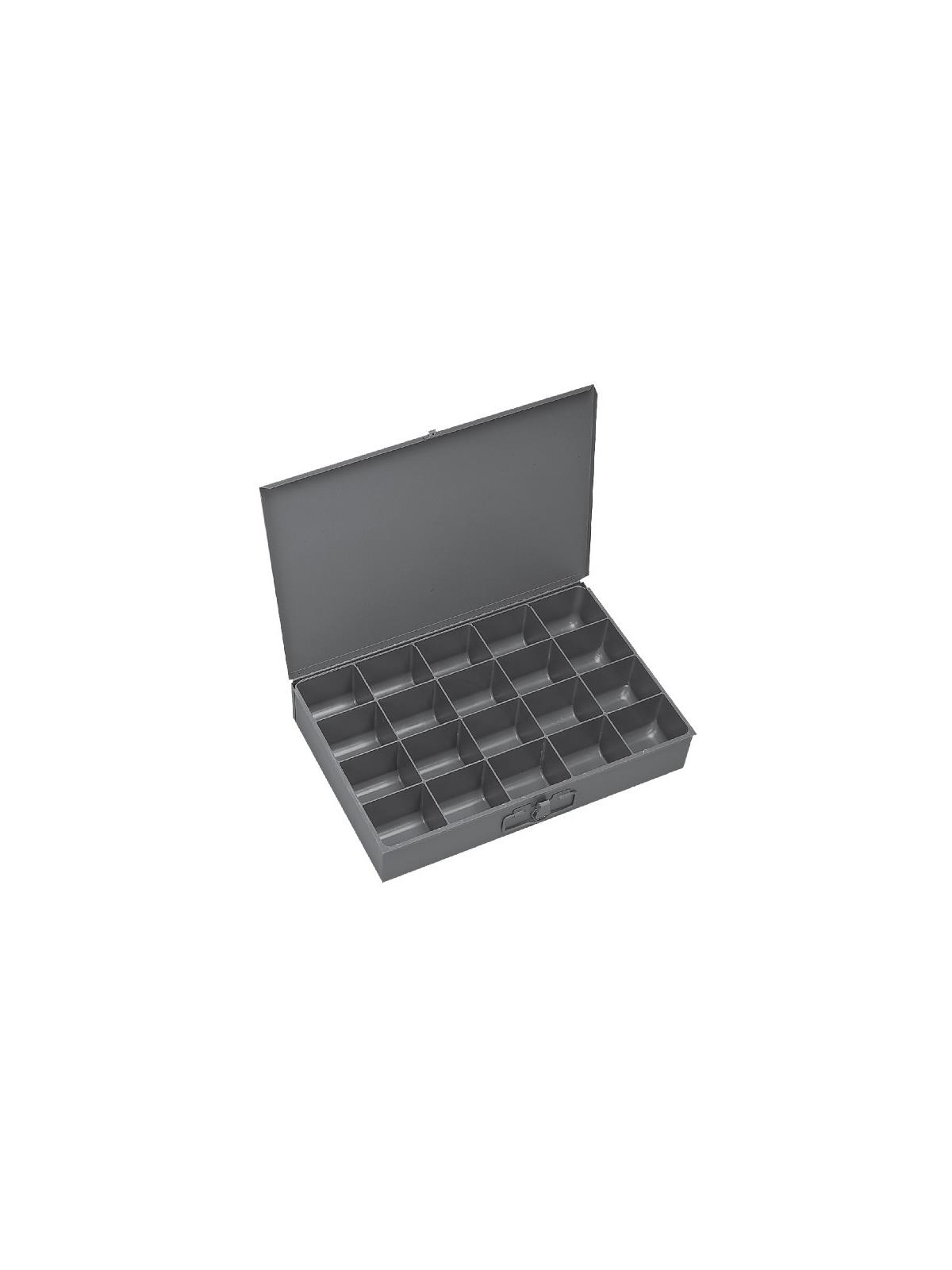 Efficient storage and organization for a variety of parts and components. Each compartment box interior is manufactured of polypropylene with scooped bottoms, both front and back for easy parts removal. Rugged steel, all-welded cabinets are reinforced for rigidity. Use on the workbench, counter or carry to the job site with convenient thumb-grip handles. Finished in acid and rust resistant Gray powder coating. FOB Shipping Point.