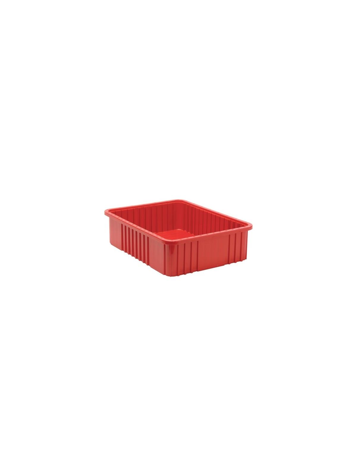 Can be used in industrial, commercial, electronic and health care industries for storage, assembly, fabrication and distribution applications. Compatible with most racks, shelving and automated, material handling equipment. Stacking rims and multi-ribbed external sides provide high impact strength. Large, smooth surface area on all four sides for content identification. Molded-in stacking ridge assures containers will stack securely with or without covers (covers sold separately). Available in Blue, Red, Gray or Clear. FOB Shipping Point.