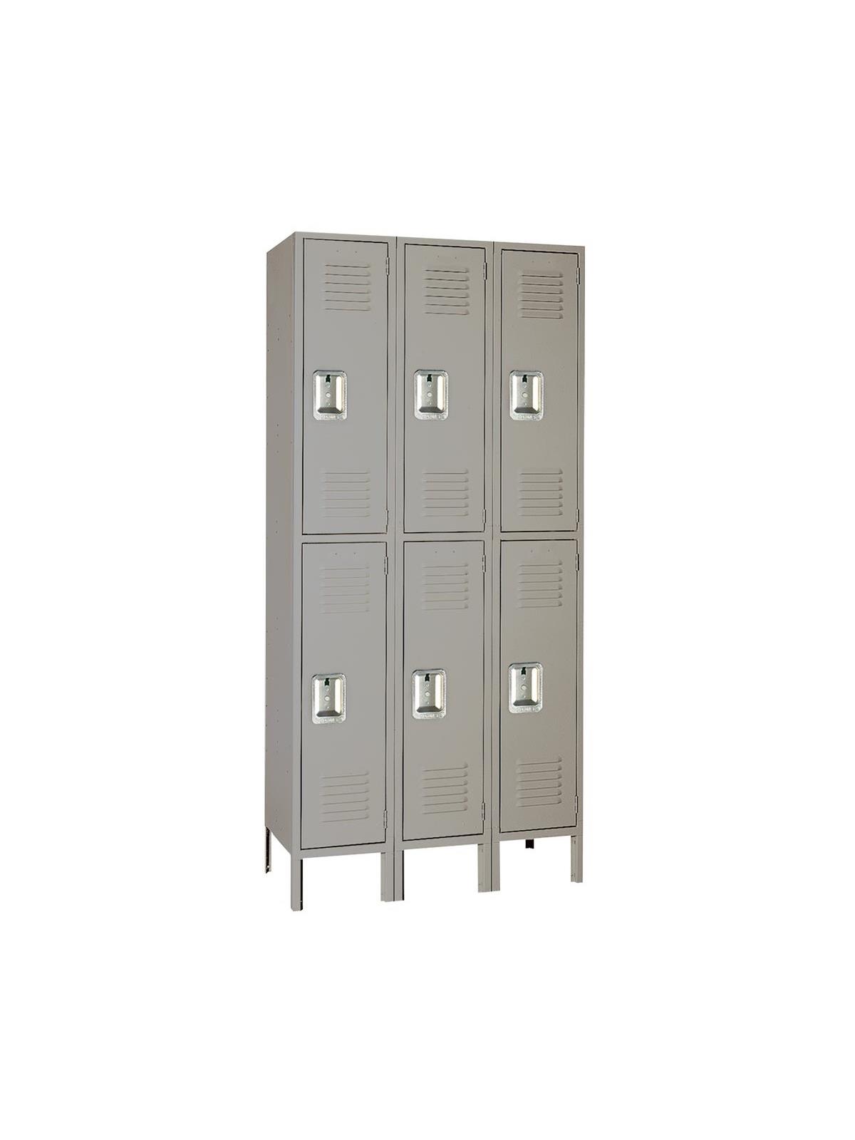Double Tier Lockers - Features steel recessed handle and hooks for hanging clothing and other items.