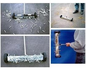 Capable of holding a 50 lb. steel plate, this hard-working magnet is perfect for use on warehouse floors, driveways and job sites. Its removable handle makes for easy transport and storage. 20" overall length, 2-1/2" face width and 1-1/4" ground clearance. 5" wheels works well on smooth terrain. FOB Shipping Point.