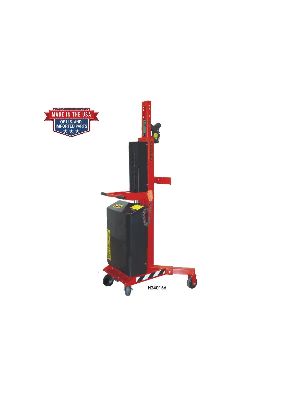 The ergonomic solution for lifting, transporting and placing drums on spill pallets. No need for the operator to touch the drum to raise, transport and lower. Features 1100 lb. capacity hydraulic jack for easy lifting of steel, poly, and fiber drums -- lifts 1" per stroke. Spring loaded grip holds any rimmed drum. Handles most 30, 55, and 85 gal. drums. Ergonomic design allows drums to be easily raised 20" above the floor. Swivel 5" x 2" phenolic casters for easy movement. Choose from five models - Standard, High Reach, Scale, Power Lift & Drive. FOB Shipping Point.