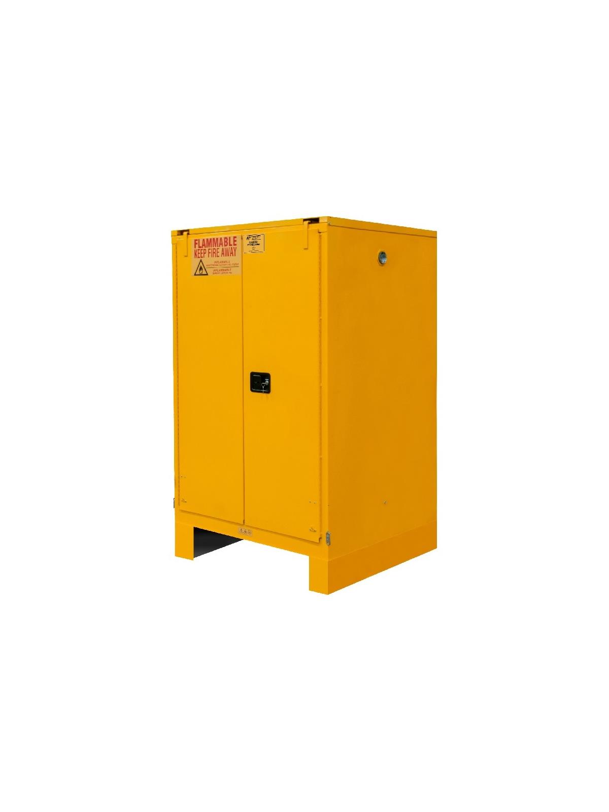 Flammable Storage Cabinets are required by OSHA and UFC in commercial and industrial facilities where flammable liquids are used and stored. Cabinets feature recessed lockable paddle latch and 3 point locking systems which greatly improves security. Bunged air vents on each side of the cabinet allows for greater ventilation. Constructed of all welded Heavy Duty Steel.