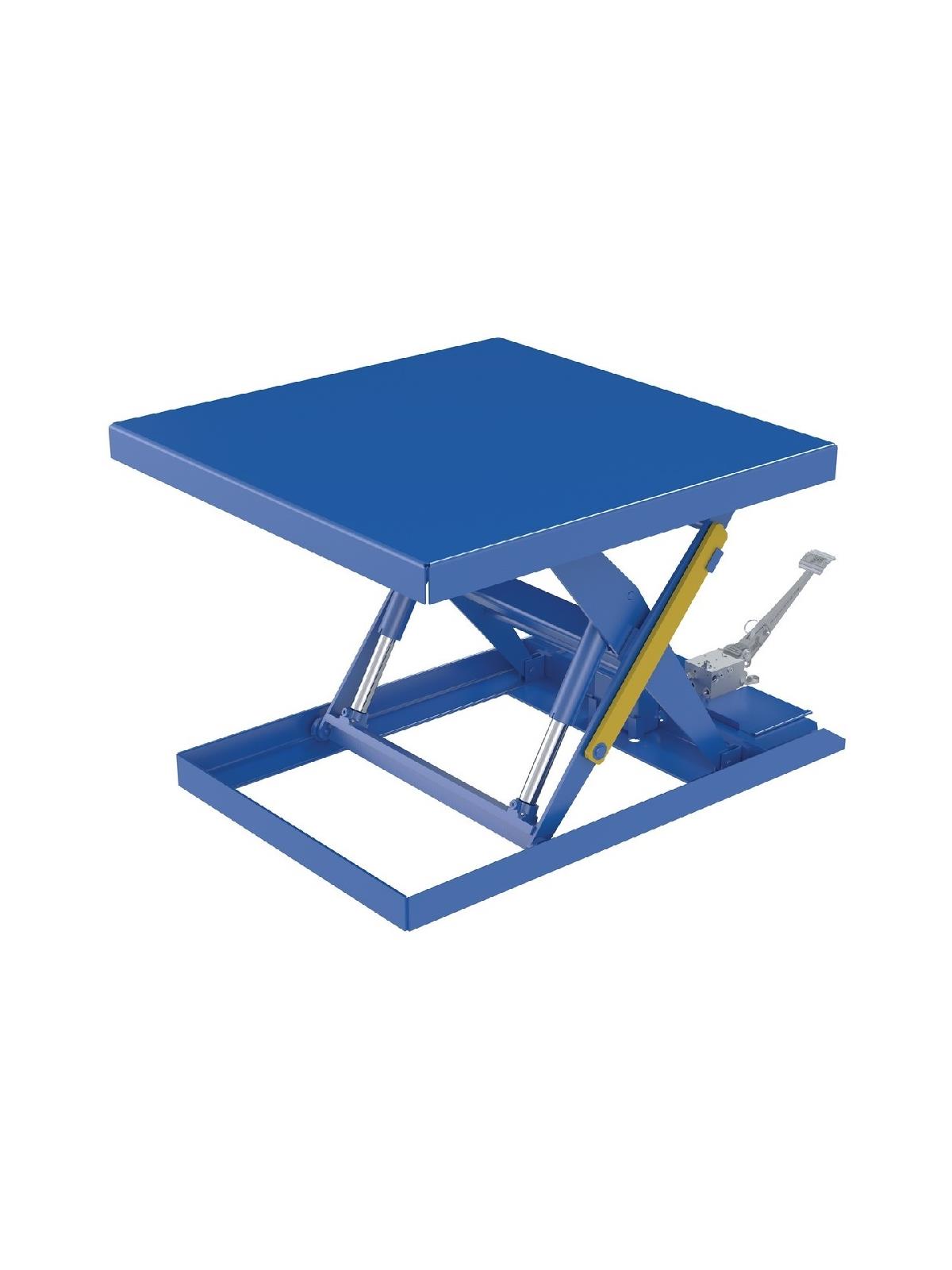 Foot Pump Scissor Lift Tables are used by all types of manufacturing and warehousing facilities. Features torsion tubes for side to side stability, pressure flow control valve for controlled lowering, and foot pump. Rugged welded steel construction. Painted blue finish. FOB Shipping Point.