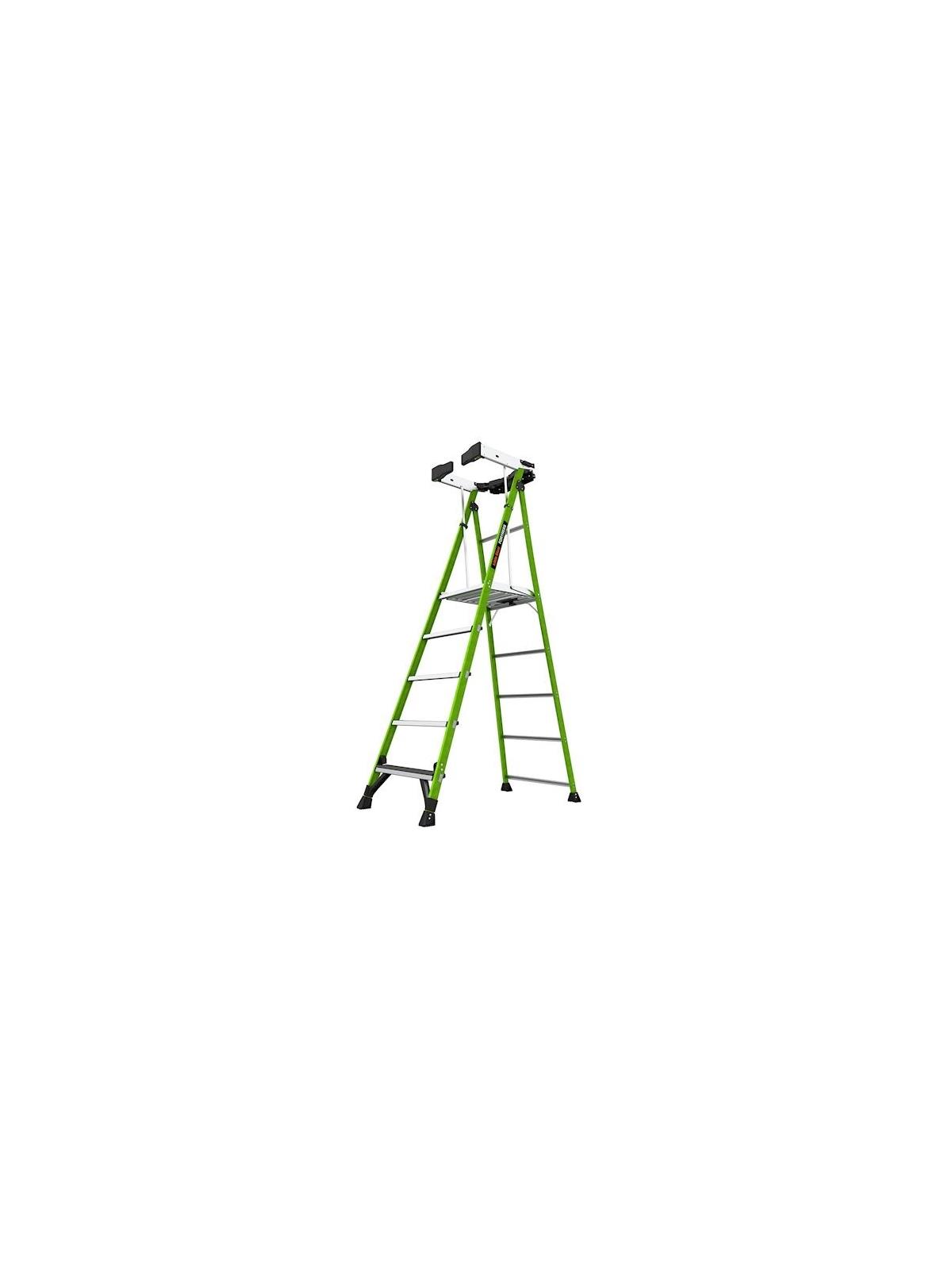 Fortress Platform Ladders feature a fiberglass ladder with ground cue and a wrap-around enclosure with an auto-closing gate. Platform size measures 1'7" x 1'5". Standard non-marring feet. 1-Year Warranty. FOB Shipping Point.