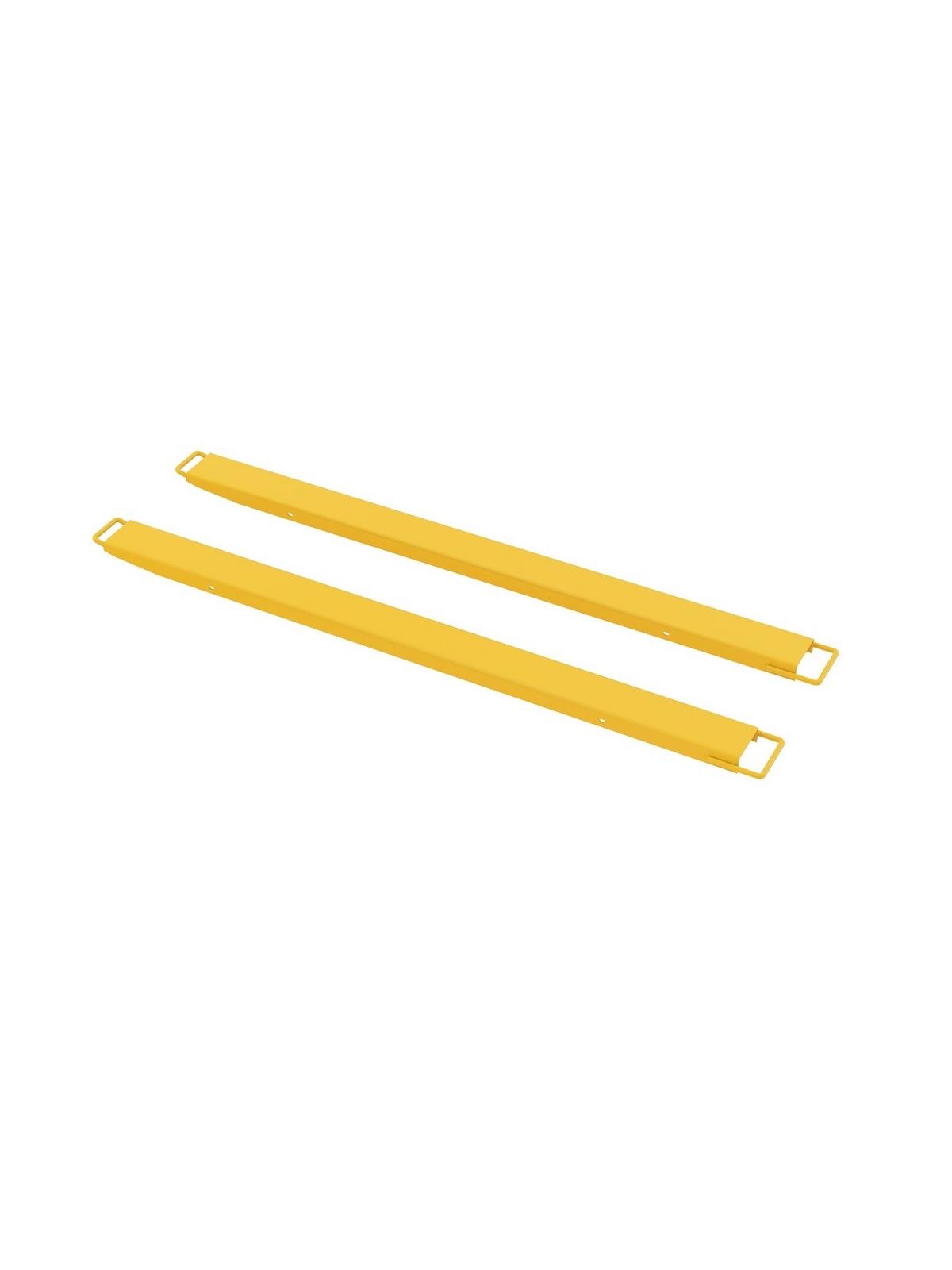 High Strength Fork Extensions are the perfect accessory for new or existing forks. The high strength material provides extra support needed to lift large heavy objects with a fork lift. A 3/16" thickness and included lifting handle for simple placement of the extension onto the lifting fork. These models are almost 40% lighter than standard fork extensions. 4,000 pound capacity is evenly distributed per pair. A powder coat finish is included to diminish scrapes and minimize abrasion during use. Baked-in powder coat finish for added toughness. FOB Shipping Point.