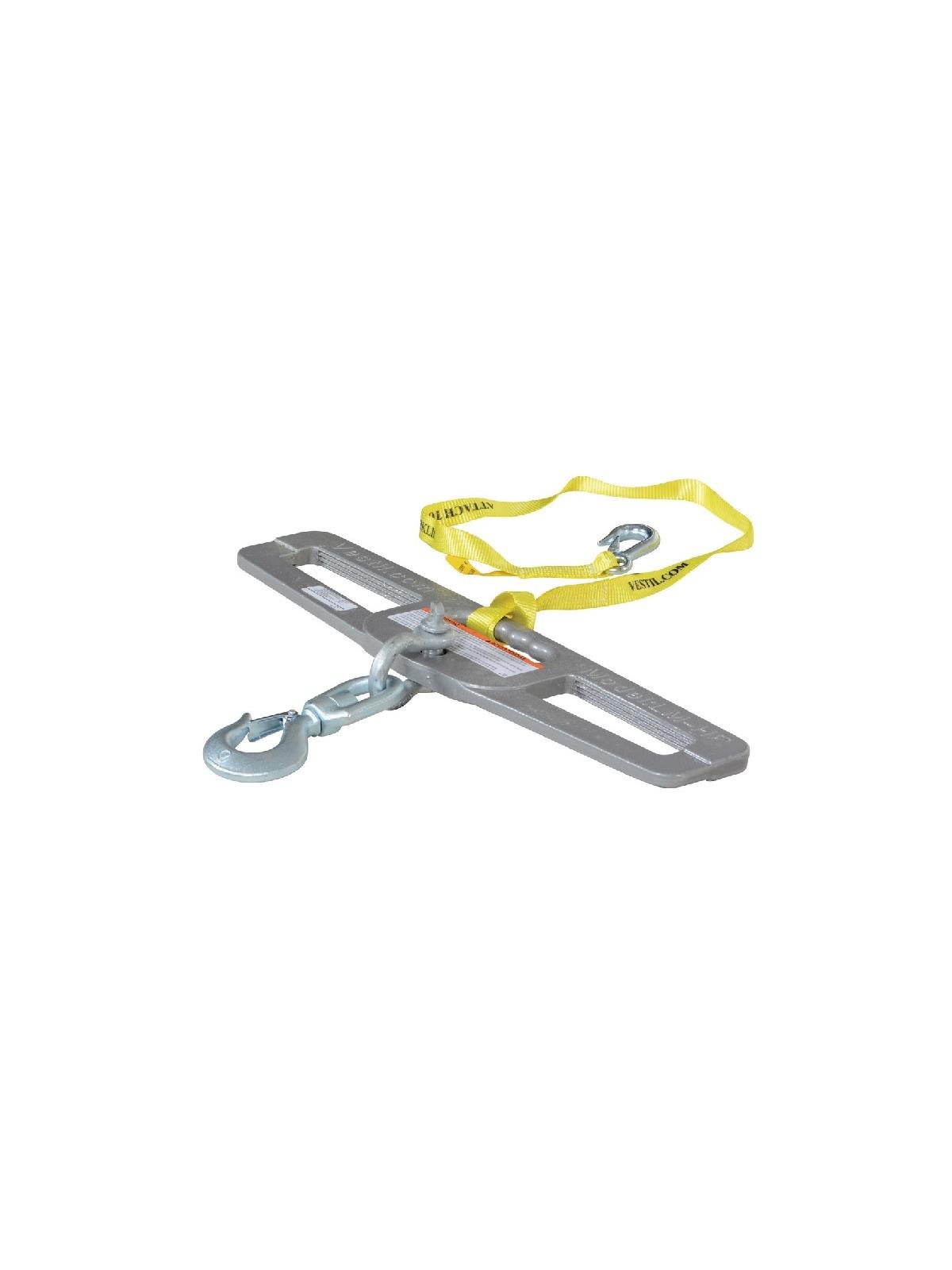 Hook Plates enable any fork truck to safely lift a load using chains, cables or slings. Features slanted fork openings measuring 6-1/2" wide by 1-3/4" high to prevent the hook plate from being used upside down. A hook with anchor shackle is included. FOB Shipping Point.