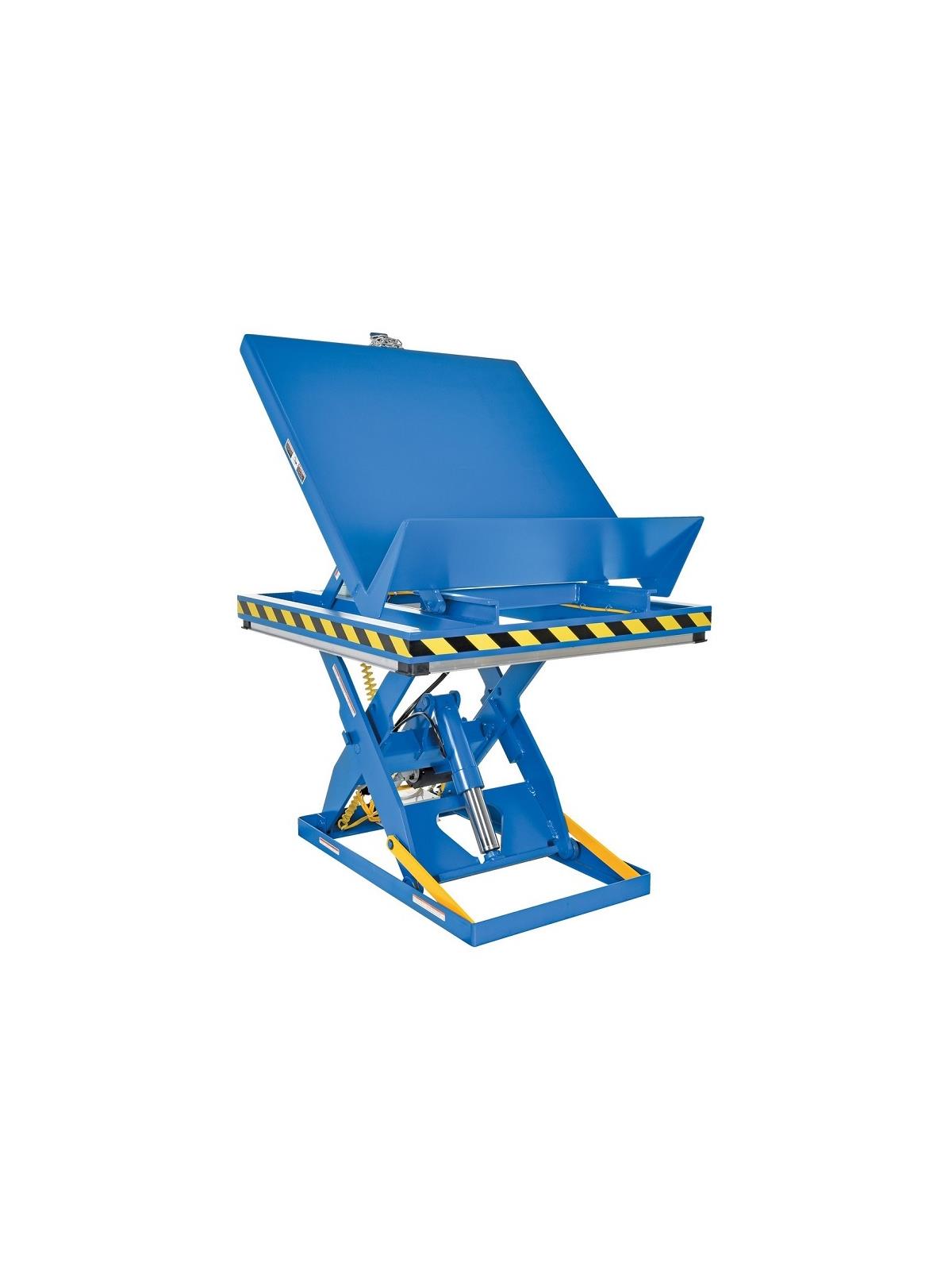 Features toe/pinch guard. 4 push-button hand pendant control on an 8' coil cord. Emergency stop if hose breaks. Fused 24V push button control. Lock-in place safety maintenance support. 45° maximum tilt, 36" vertical travel. FOB Shipping Point.