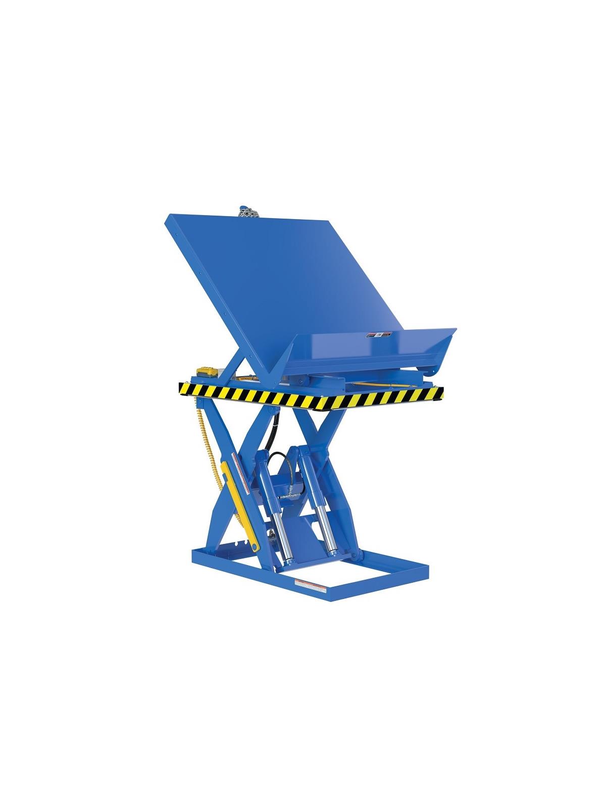 Features toe/pinch guard. 4 push-button hand pendant control on an 8' coil cord. Emergency stop if hose breaks. Fused 24V push button control. Lock-in place safety maintenance support. 45° maximum tilt, 36" vertical travel. FOB Shipping Point.