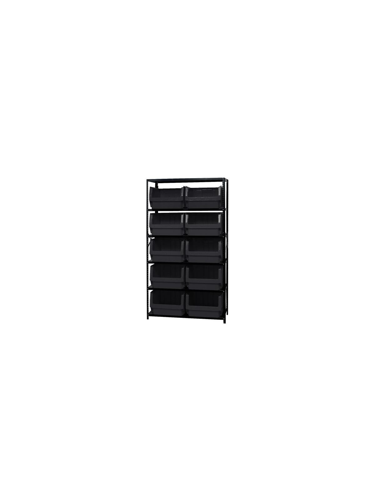These ultra heavy-duty shelving systems incorporate Giant Hopper Bins. Five combinations solve any storage requirements. Bins offer optional clear window fronts as well as dividers for maximum storage capacity. Shelving is tough 42"W. with a 475 lb. capacity per shelf. Smooth powder coat finish won’t rust or corrode. Bins available in Blue, Yellow, Green, Red or Black. FOB Shipping Point.