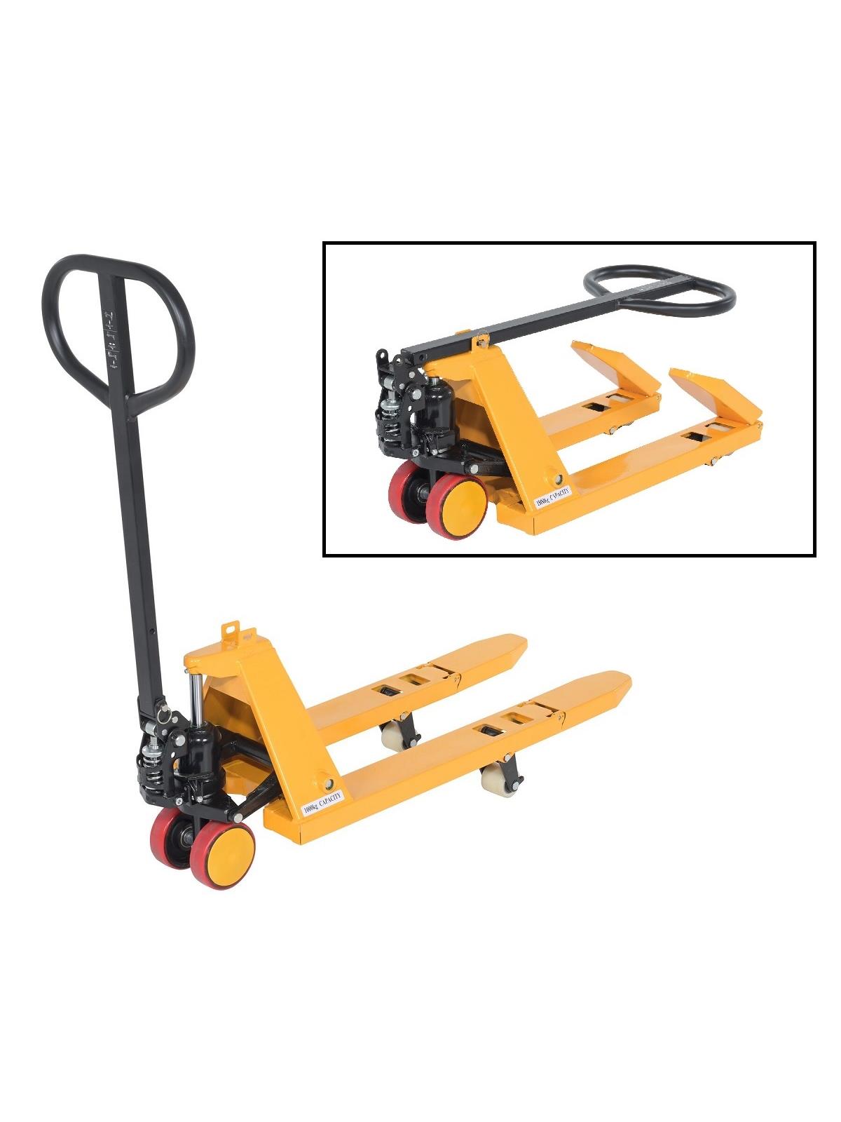 The Mini Hand Pallet Truck is an asset to a variety of manufacturing and shipping facilities. A robust construction allows the user to comfortably and easily transfer goods, while minimizing manual labor. The unit is lightweight for simple portability and compact enough to reduce storage space when not in use. Smooth finish for simple cleaning and handling during use.