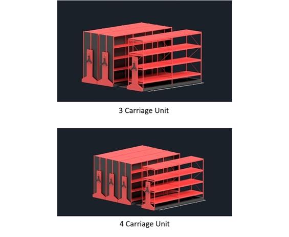 HEQMAS-3-4812-RD Preconfigured Mobile Aisle #2 3 Carriages - 2 w/Standard Shelving & 1 w/Bulk Rack Shelving Each 4' x 12' x 7' Textured Red 9166 $48,953.82