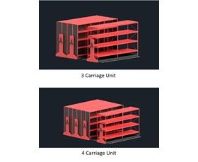 HEQMAS-4-3612-RD Preconfigured Mobile Aisle #3 4 Carriages - 3 w/Standard Shelving & 1 w/Bulk Rack Shelving Each 3' x 12' x 7' Textured Red 10098 $58,201.13