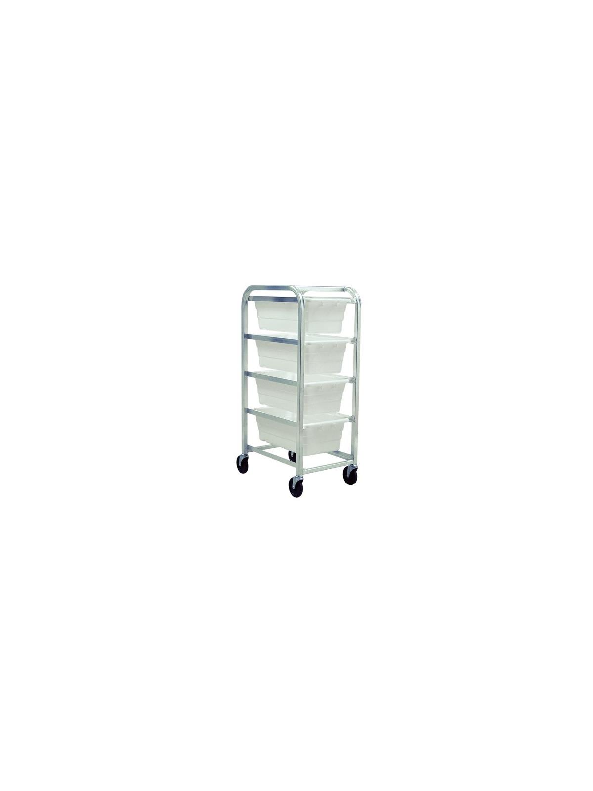 Aluminum Tub Rack transports and stores all kinds of products. Cart comes complete with tubs. Rolls on 5" rubber wheel casters. Tubs available in Gray, Blue, White, Red, or Yellow. FOB Shipping Point.