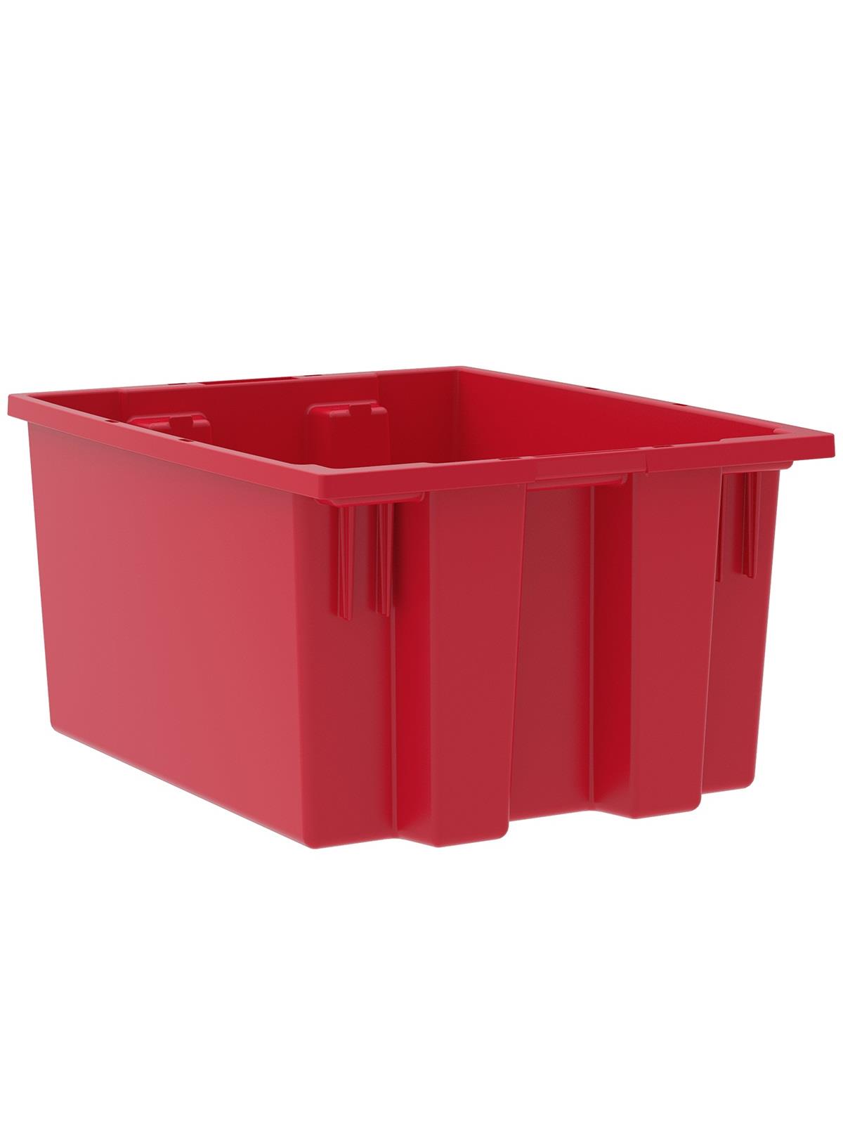 Heavy-duty construction provides a superior service life resulting in lower replacement costs than “budget-priced” totes. Smooth surfaces are easy to clean and are resistant to most solvents and chemicals. Available optional lids protect contents from dust and damage. Stackable with or without lids for shipping. When empty and without lids, totes nest for space saving storage. Available in Red, Blue, or Gray. Gray totes manufactured from FDA-approved materials. FOB Shipping Point.