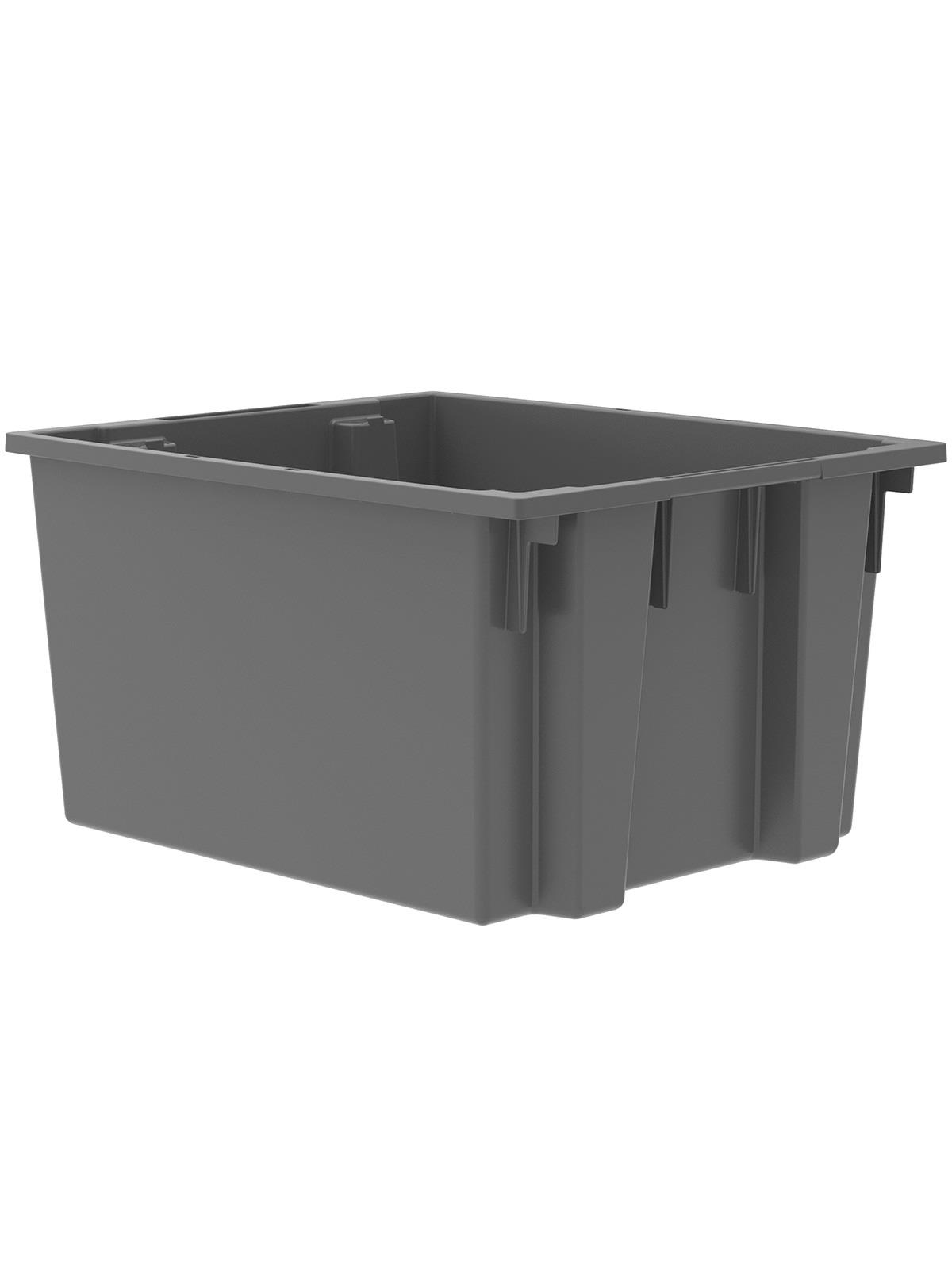 Heavy-duty construction provides a superior service life resulting in lower replacement costs than “budget-priced” totes. Smooth surfaces are easy to clean and are resistant to most solvents and chemicals. Available optional lids protect contents from dust and damage. Stackable with or without lids for shipping. When empty and without lids, totes nest for space saving storage. Available in Red, Blue, or Gray. Gray totes manufactured from FDA-approved materials. FOB Shipping Point.
