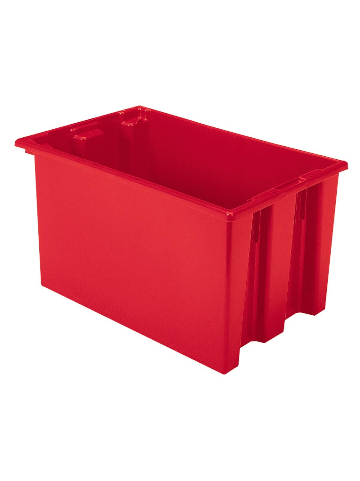Heavy-duty construction provides a superior service life resulting in lower replacement costs than “budget-priced” totes. Smooth surfaces are easy to clean and are resistant to most solvents and chemicals. Available optional lids protect contents from dust and damage. Stackable with or without lids for shipping. When empty and without lids, totes nest for space saving storage. Available in Red, Blue, or Gray. Gray totes manufactured from FDA-approved materials. FOB Shipping Point.