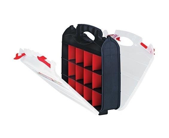 Clear lid design allows quick identification of parts inside. Unique latch enables lid to close and latch tight and secure. Dividers prevent parts from migrating between various compartments. Base and lid manufactured from industrial grade polypropylene. Dividers included allow you to customize the size of the desired compartment inside. Sold in carton quantities only. FOB Shipping Point.