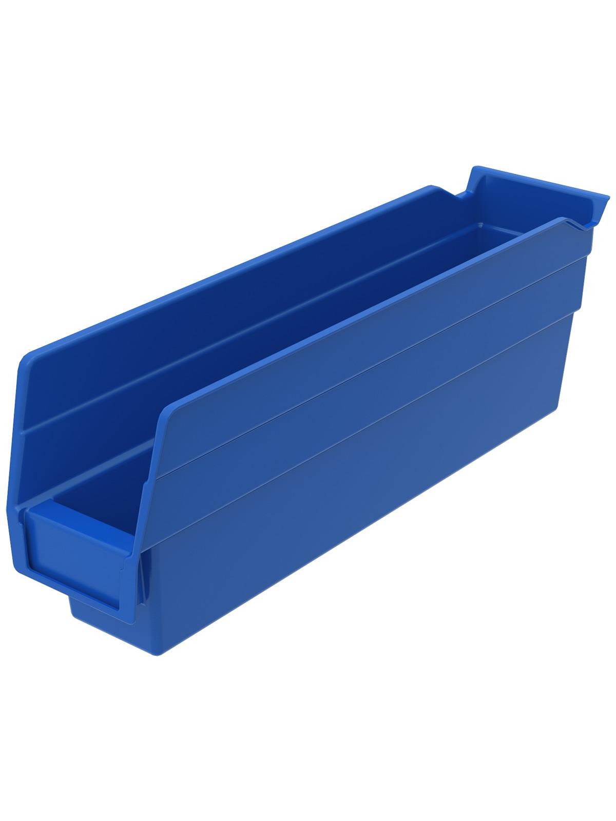 Outlasts corrugated bins - pays for themselves in reduced replacement costs. One-piece construction is waterproof and unaffected by grease or oil. Works with 12", 18" and 24" deep shelving, or vertical storage and retrieval units. Labels available. Available in 22 sizes and five colors - Red, Yellow, Blue, Green, or Semi-Clear. FOB Shipping Point.