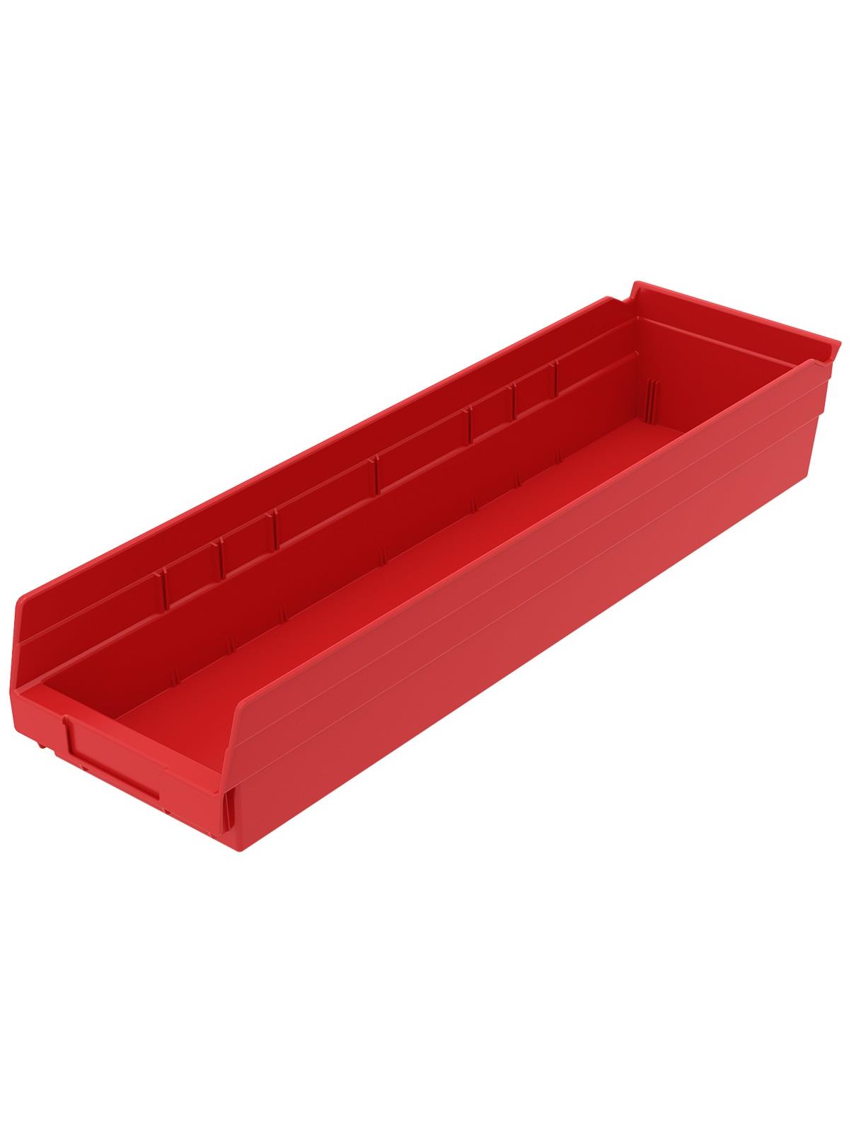 Outlasts corrugated bins - pays for themselves in reduced replacement costs. One-piece construction is waterproof and unaffected by grease or oil. Works with 12", 18" and 24" deep shelving, or vertical storage and retrieval units. Labels available. Available in 22 sizes and five colors - Red, Yellow, Blue, Green, or Semi-Clear. FOB Shipping Point.