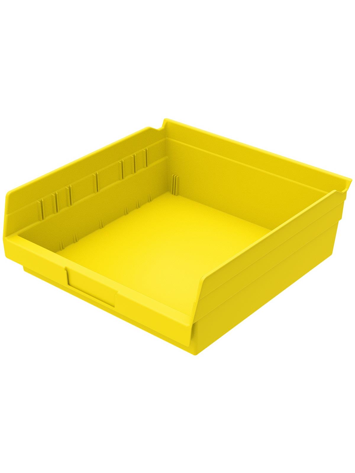 Outlasts corrugated bins - pays for themselves in reduced replacement costs. One-piece construction is waterproof and unaffected by grease or oil. Works with 12", 18" and 24" deep shelving, or vertical storage and retrieval units. Labels available. Available in 22 sizes and five colors - Red, Yellow, Blue, Green, or Semi-Clear. FOB Shipping Point.